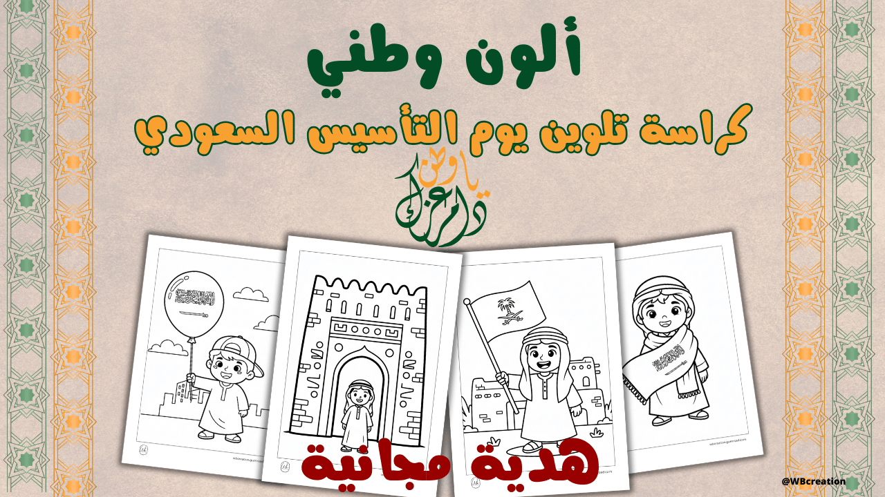 هدية مجانية يوم التأسيس السعودي 👉احصل على كوبون 45% على كراسة التلوين الكاملة!