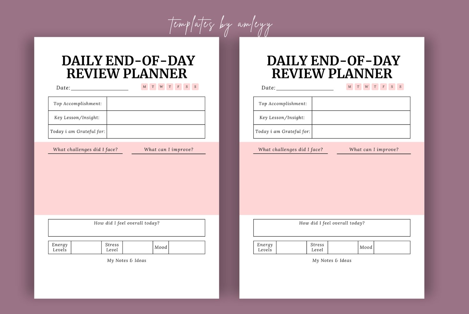 Daily End-of-Day Review Planner Printable | Gratitude & Reflection Journal Template | Canva Editable | Daily Success Review Sheet