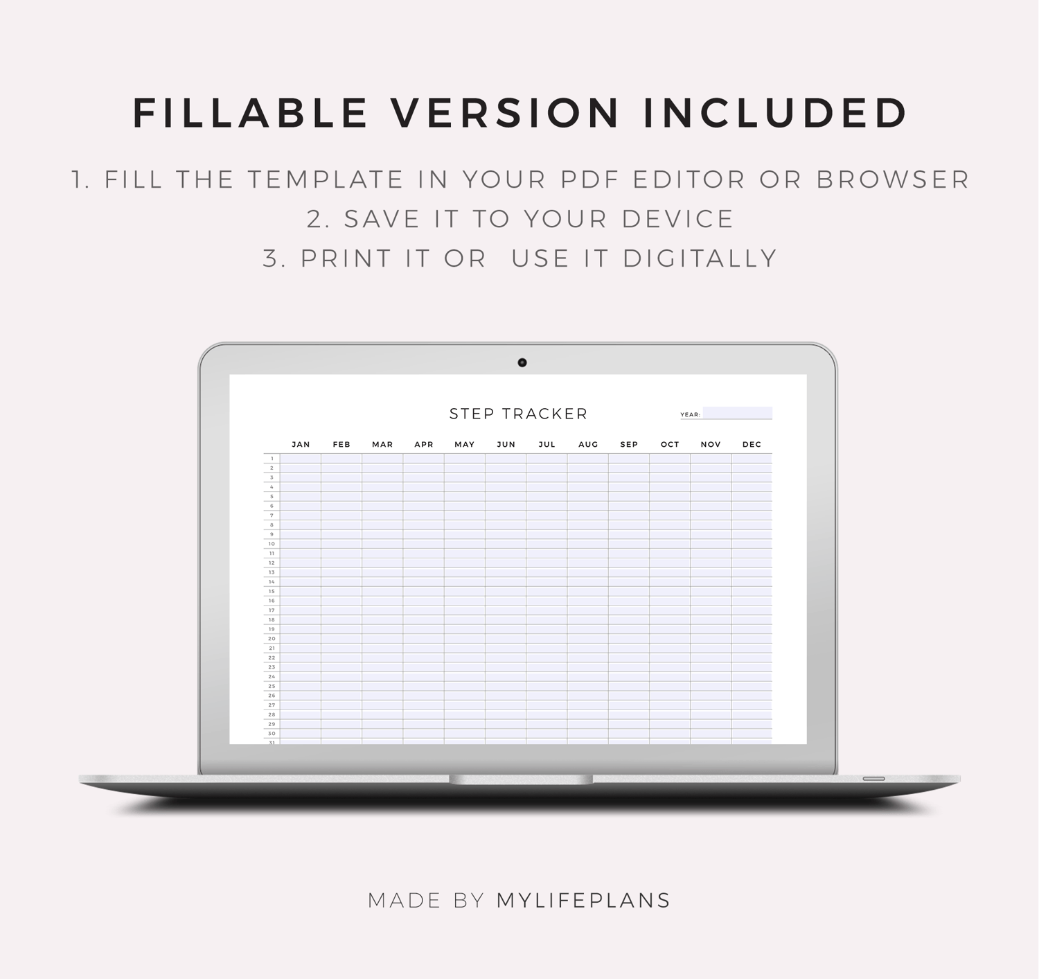 365 Day Step Tracker, Landscape, Printable & Fillable, A4/Letter Size