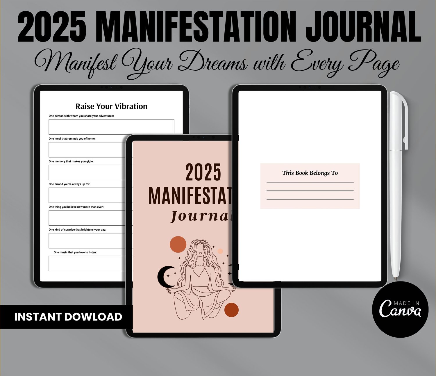 2025 Manifestation Planner, Law of Attraction Journal, Gratitude Journal, Money Manifestation, Meditation Planner, Self Care Planner