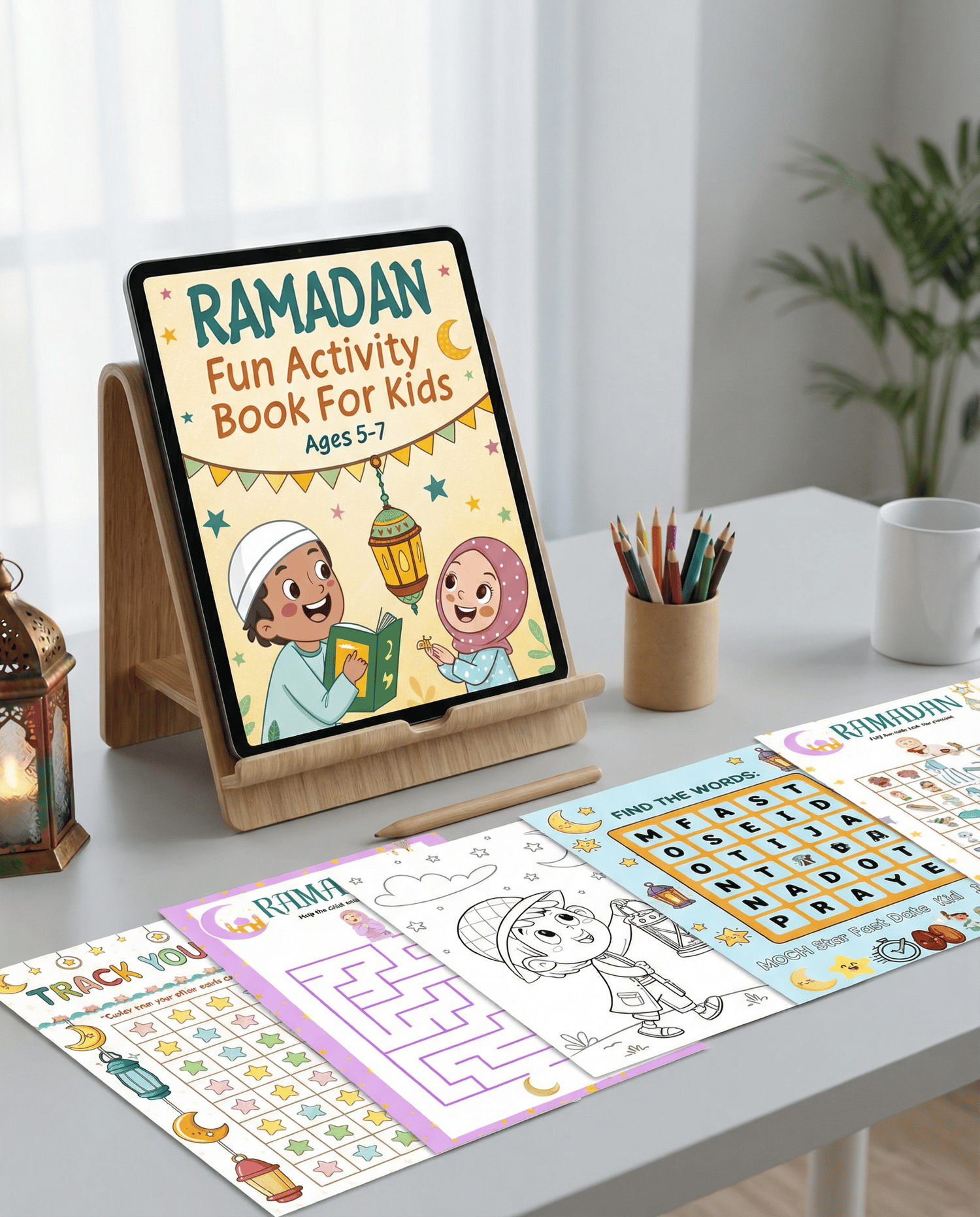 This 21-page Ramadan Activity Book is designed especially for children ages 5–7 to make learning about Ramadan fun, creative, and engaging.
