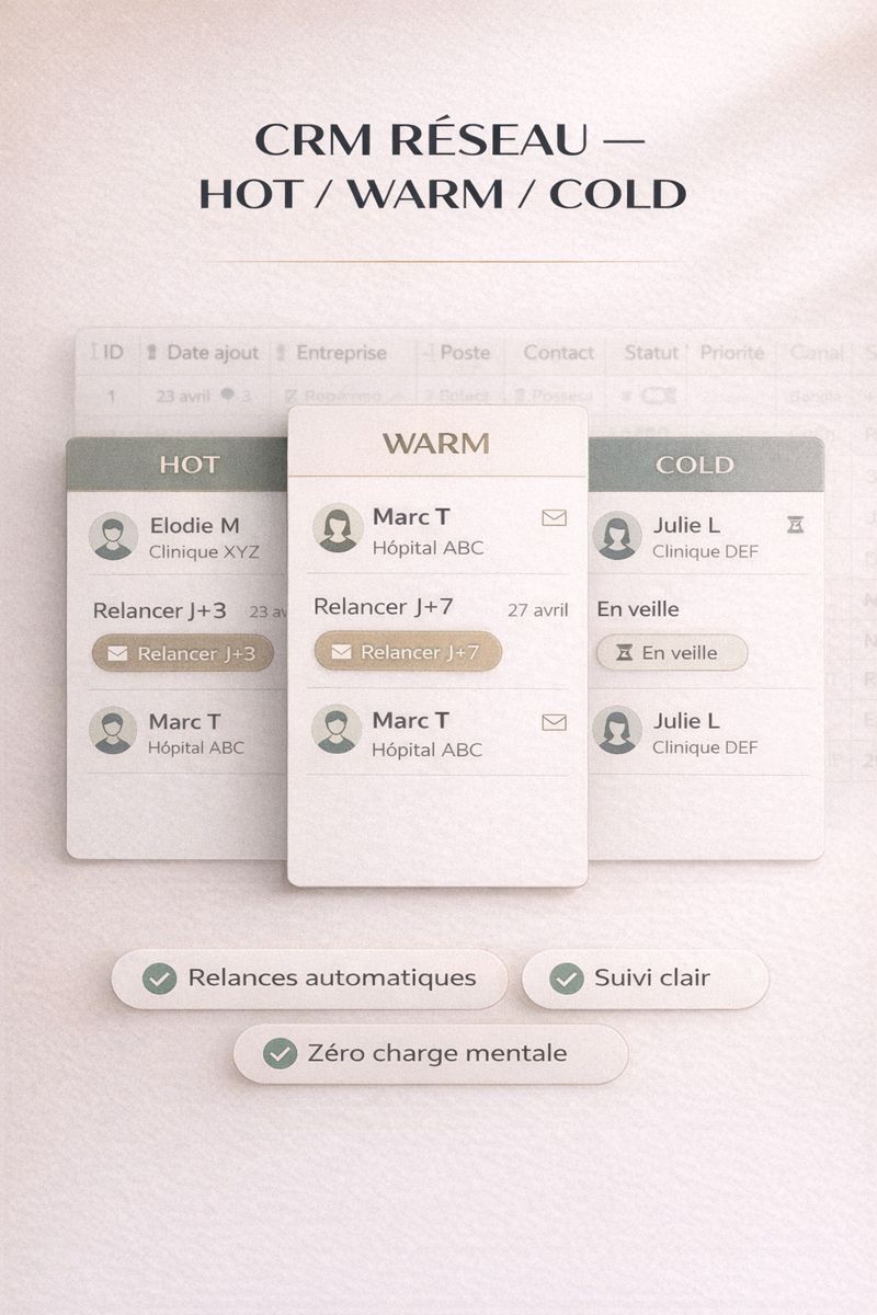 - CRM Réseau Hot/Warm/Cold + relances