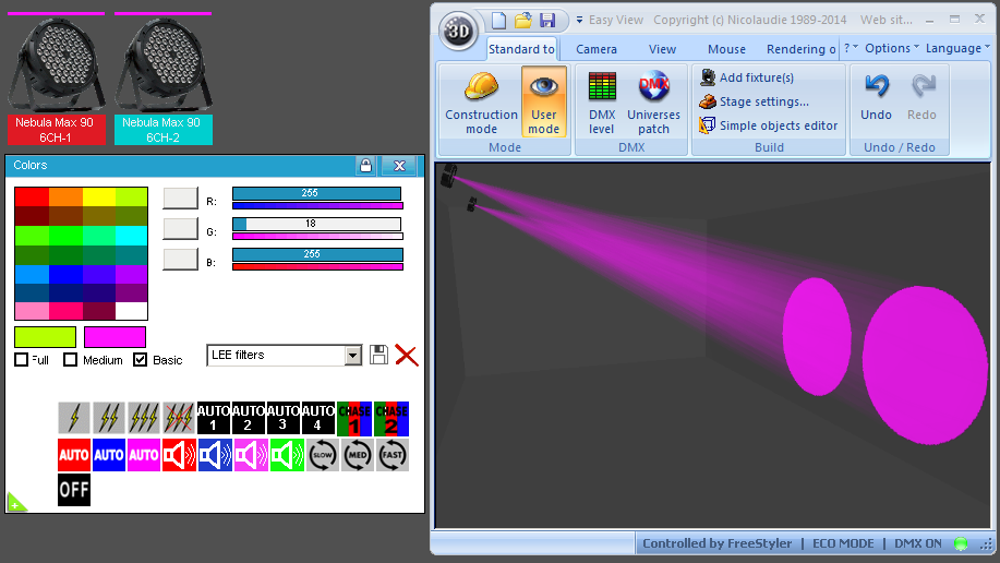 Esta Librería SSL2 está optimizada para trabajar con Magic 3d Easy View. Es decir para ver una representación 3D de las secuencias que estemos realizando con Freestyler, QLC+ o cualquier otro soft que se conecte con Magic 3d.
