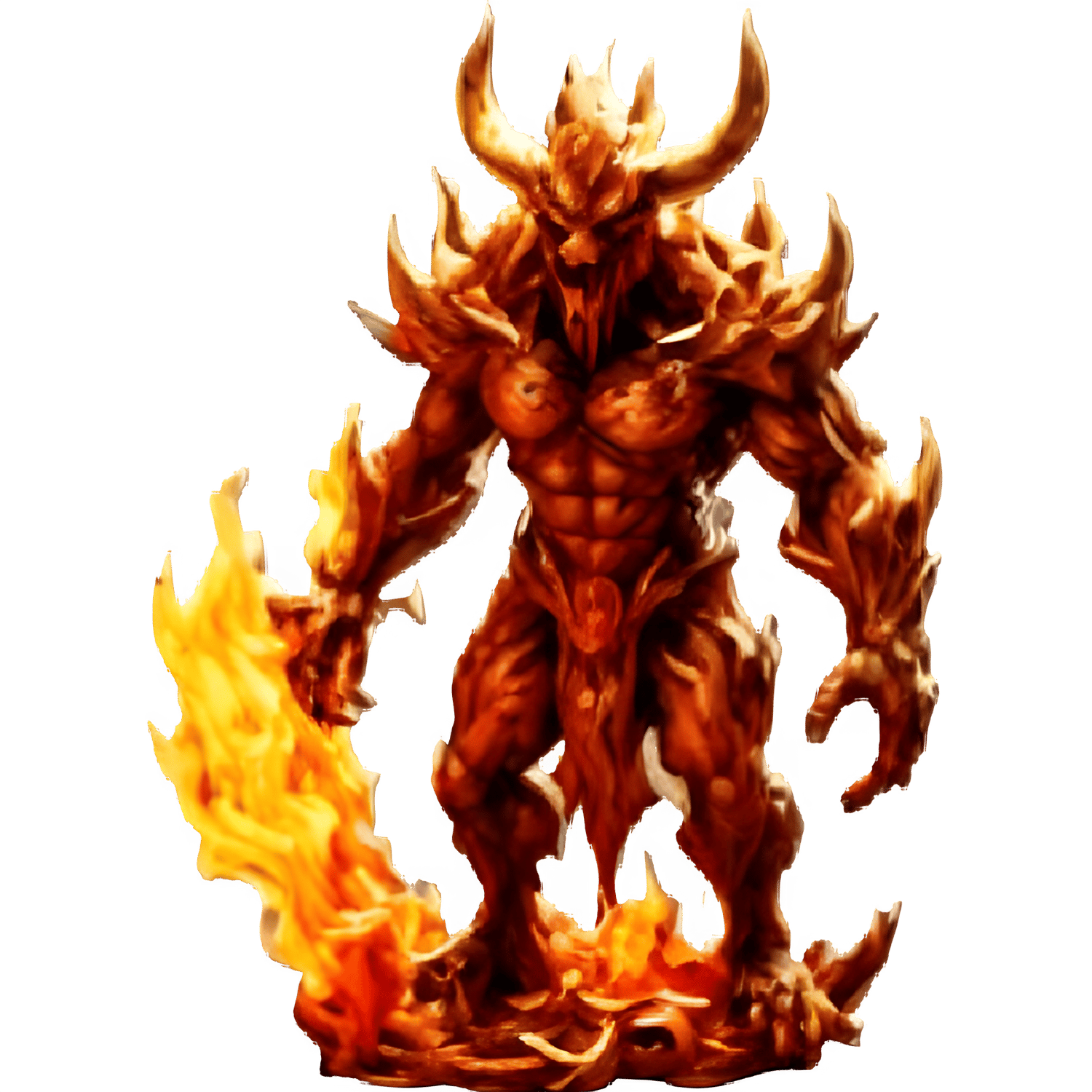 - Dynamic pose on a detailed volcanic/hell-themed base