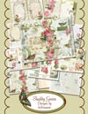 Create your own Vintage Shabby Green junk journal! This kit includes vintage-style designs featuring a romantic Victorian lady in a sweeping gown, a variety of pink roses, butterflies, birds, with different shades of green, vintage wall papers, and vintage graphic images with script & other design elements. Swirling white border to soften look and bring in the romance. Can be folded to create journal pages. Includes journal pages, journal cards, tags, bellyband, ephemera and backer papers. All in uplifting colors with a vintage touch. Beautiful crafting paper ephemera for your junk journal, scrap booking and art projects. Download and print.