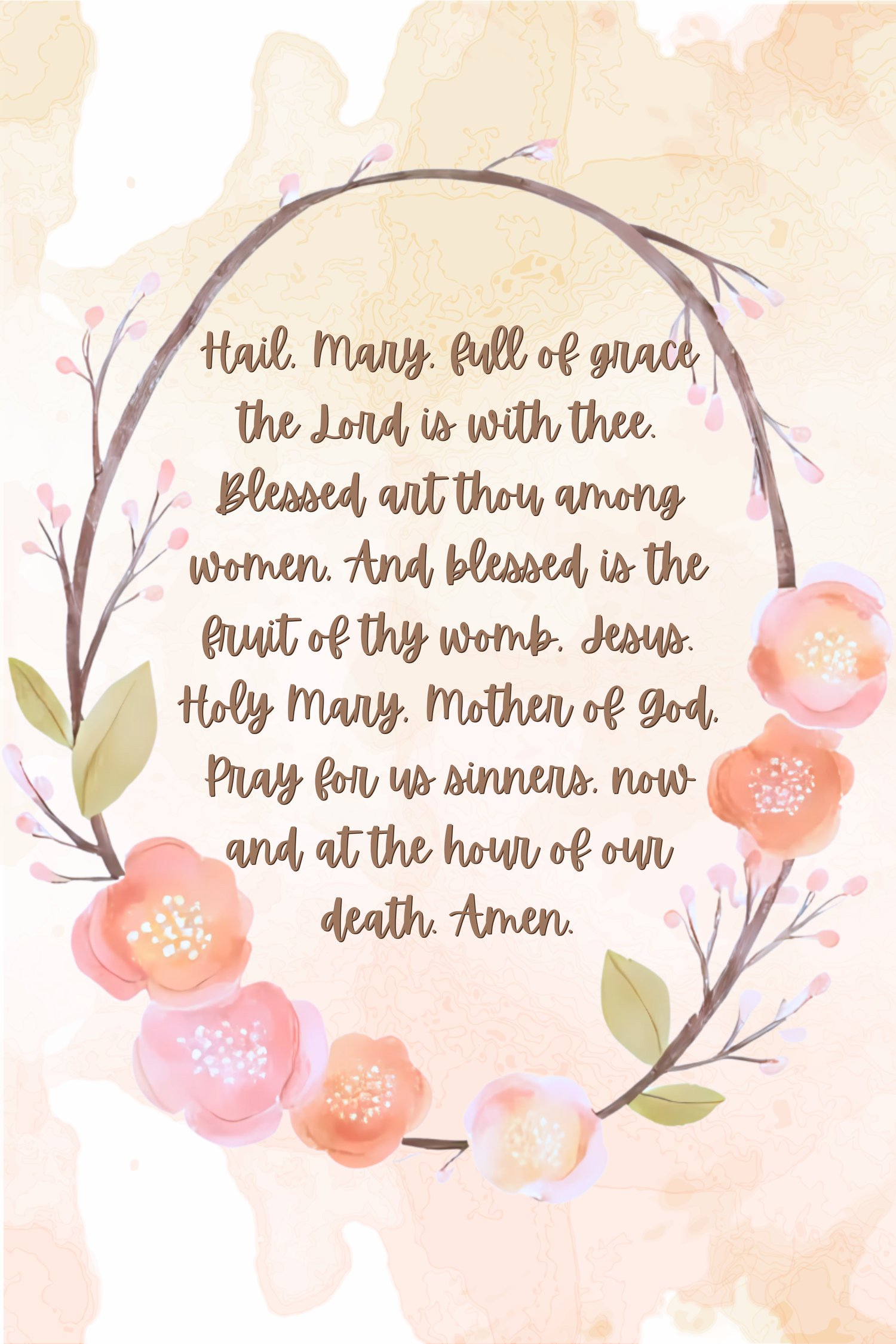 Hail Mary Floral Wreath Printable | Catholic Wall Art | Watercolor Prayer Decor