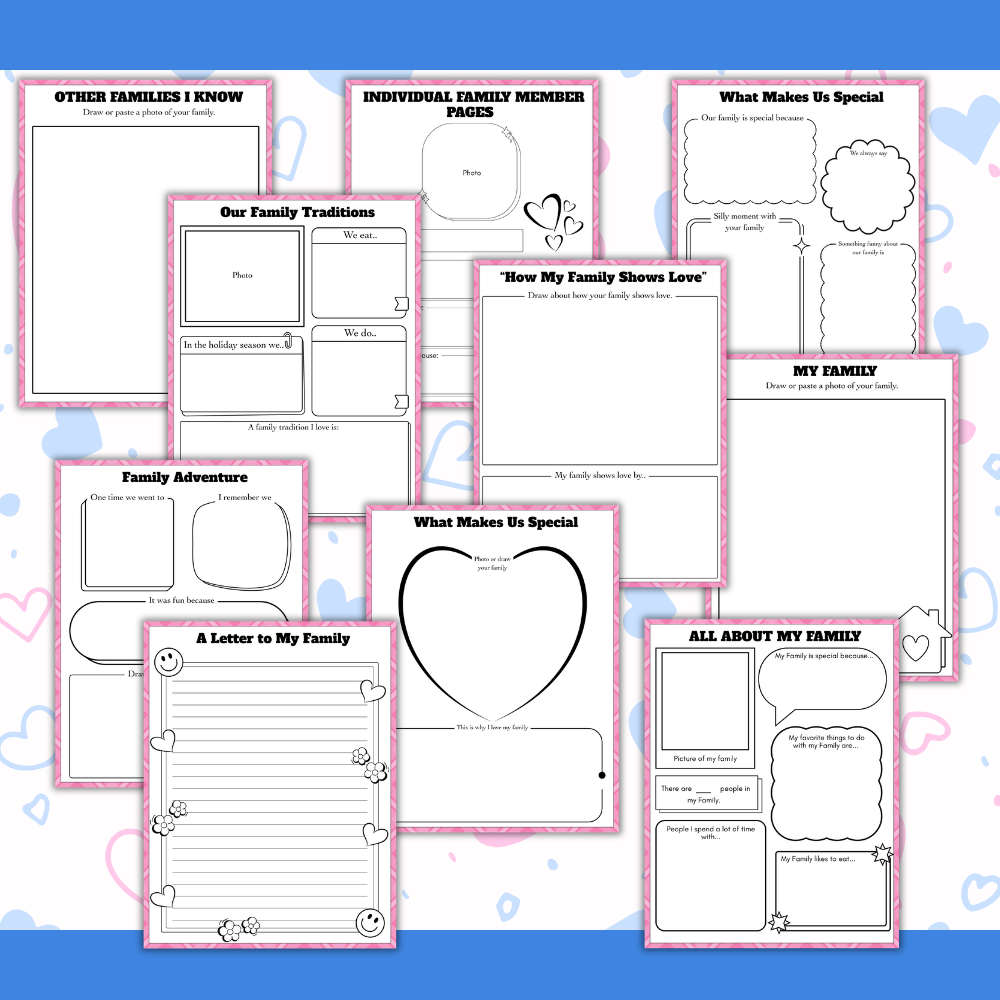 Have some family fun with this memorable activity with your little ones. A Family Portrait Booklet is just the perfect keepsake. 14 pages of activities ranging from "About Me" to "What Makes us Special."