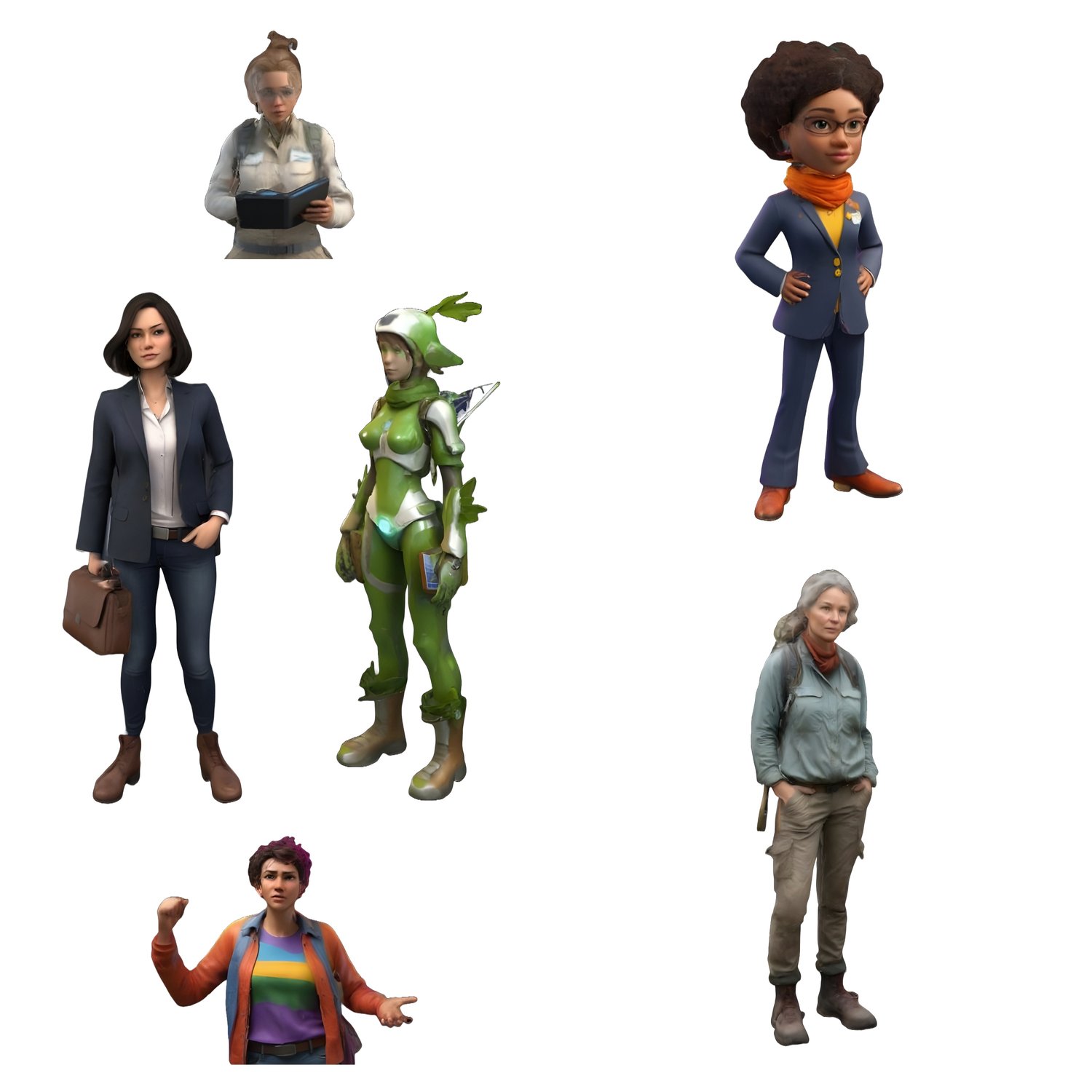 This is a diverse collection of 6 professional women character models, designed in a modern, semi-realistic style perfect for 3D printing or digital use. The pack includes: