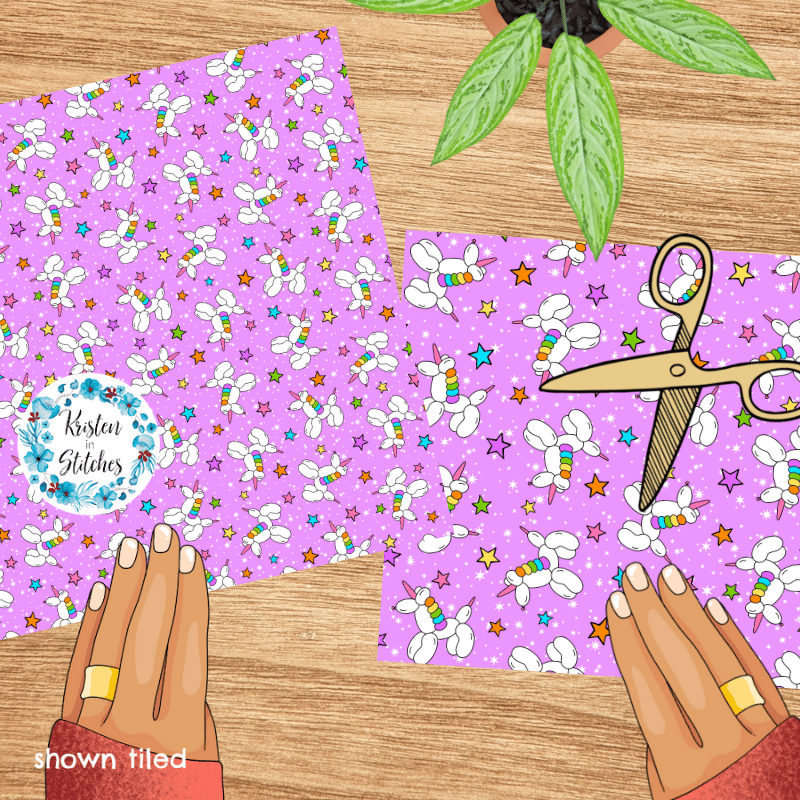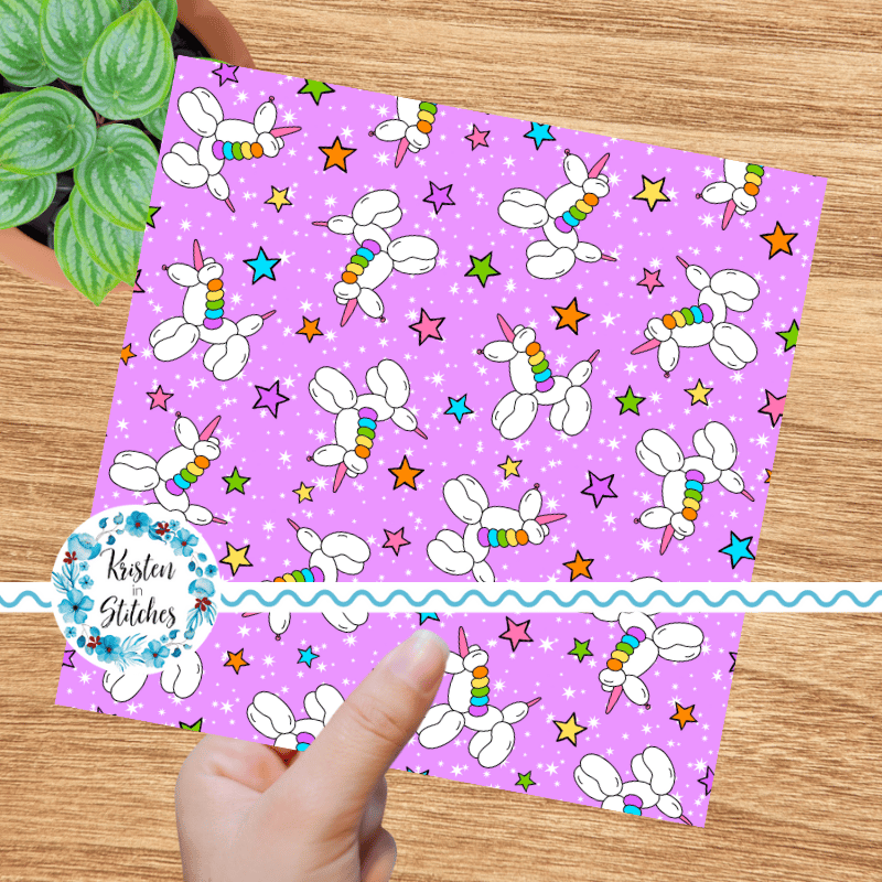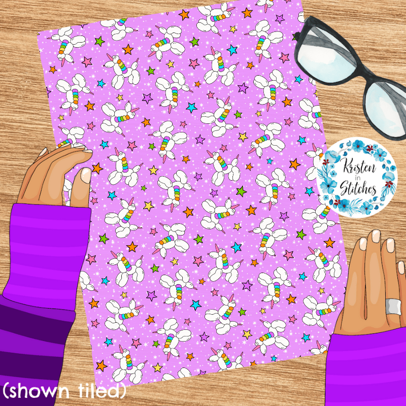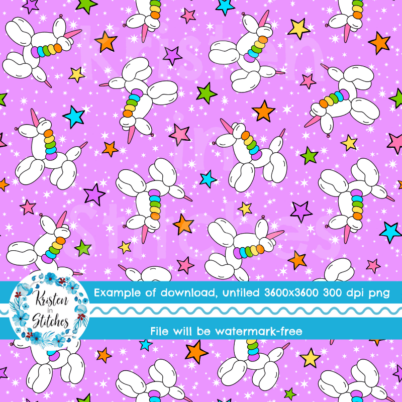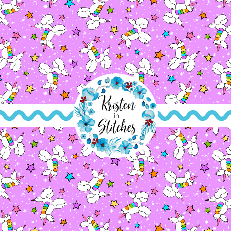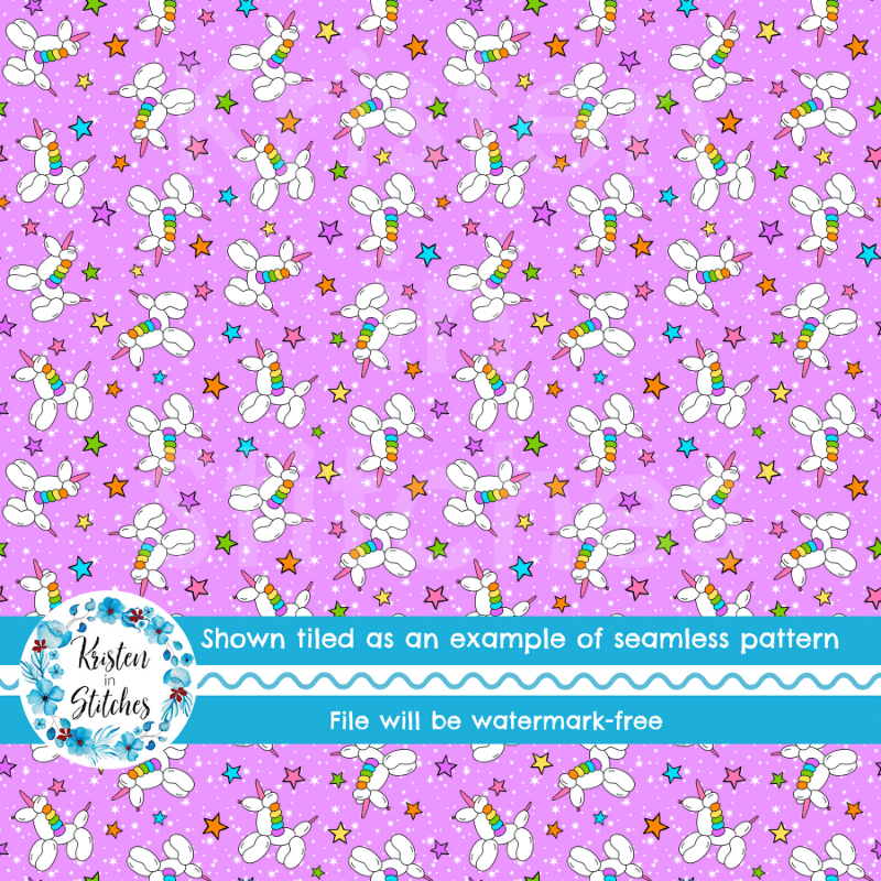 Unicorn Party Balloon Dog Animals Seamless Pattern, White Horses, Purple