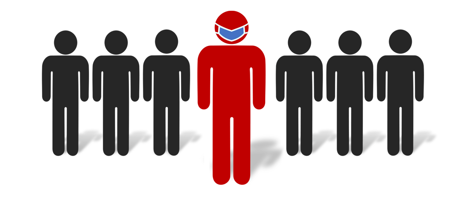 An image of a group of simple figures with one standing out infected, displayed by a red color.