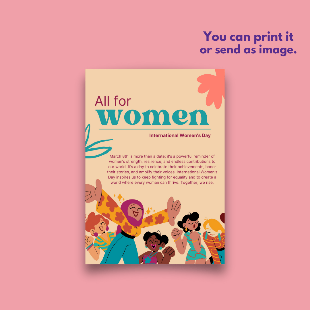 Celebrate International Women's Day with this editable and printable template, designed to honor the power, strength, and leadership of women.