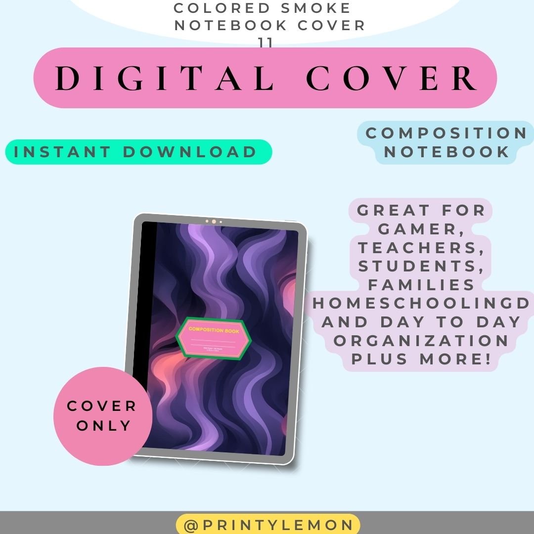 11 Colored Smoke 3D | Digital Cover Premium | Notebook Cover | GoodNotes | Composition Notebook | Printable