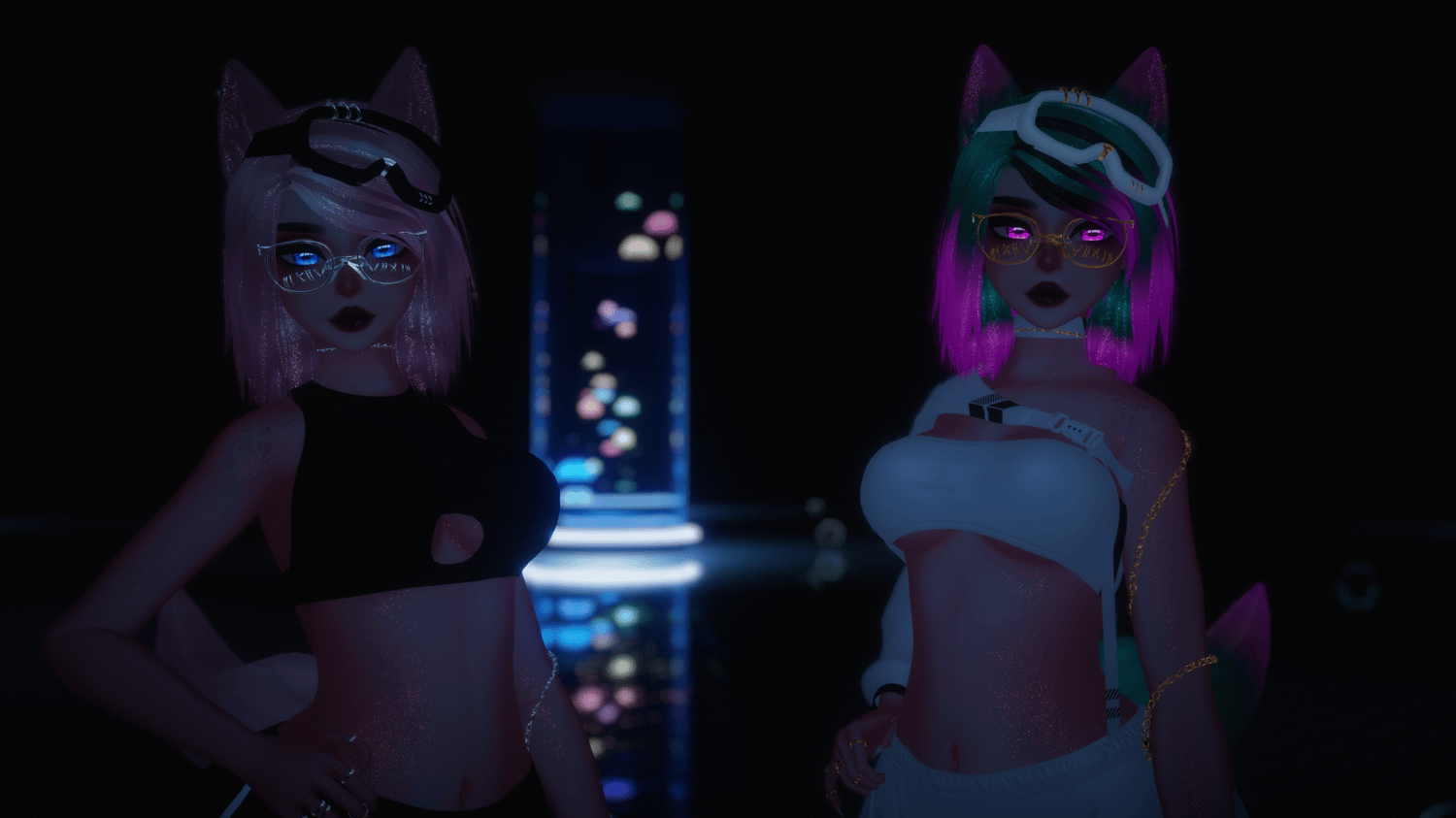 | Body by Pandaabear#9873 (EDITED BY ME, NO REUSE) | Head/Head Textures by DUCC#0008 (EDITED BY ME, NO REUSE) | Main Body Texture by Ying#6669 (EDITED BY ME, NO REUSE) | Hair Textures by Cicieaaa#7777 | Fluff's ToolBox | Better Gestures by Wolvei#0001 | VRCFury Tool | GoGoLoco by Franada | All hair by @NESSYY. | Yoga Outfit/Jacket/Sneakers | Dog Ears & Tail by Ghoul#1272 | Shorts by Milky Mommy#6969 | Bra/Panty/Sleeve by Ana_Ram | Glasses by kri#1214 | Chain by Heartmarksman#0666 | Cat Ears & Tail/Boots by DARCY.FBX | Goggles by Jess#5678 | Rings by xSnail#2902 | Stitches by sunnybun#0126 |