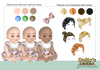 three different skin tones, three eye colours and five hair colours)