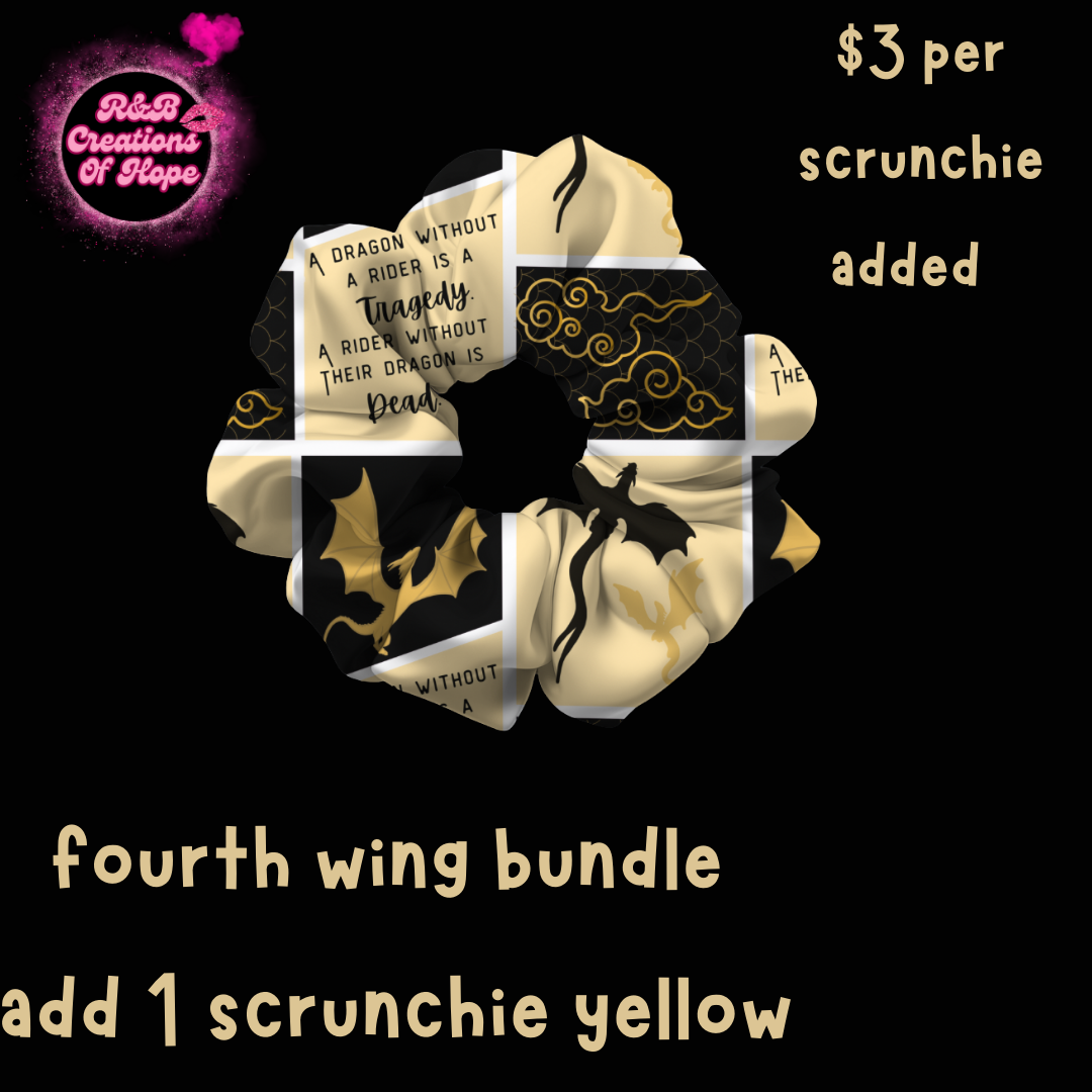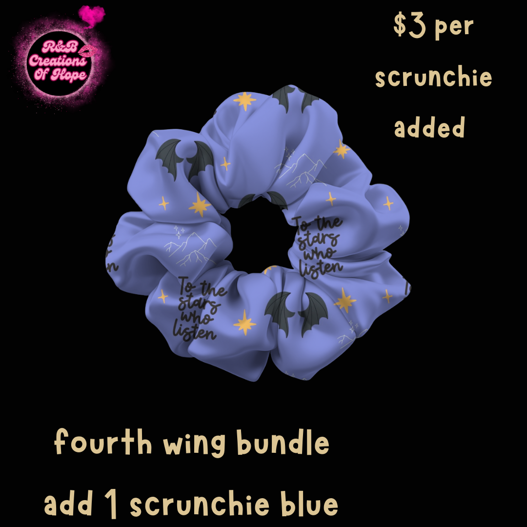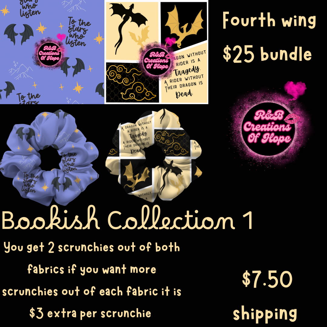 This bundle is based off fourth wing you get 2 of each if you want more make sure to add the extra scrunchie in the listing options to cart for the fabric you want more of