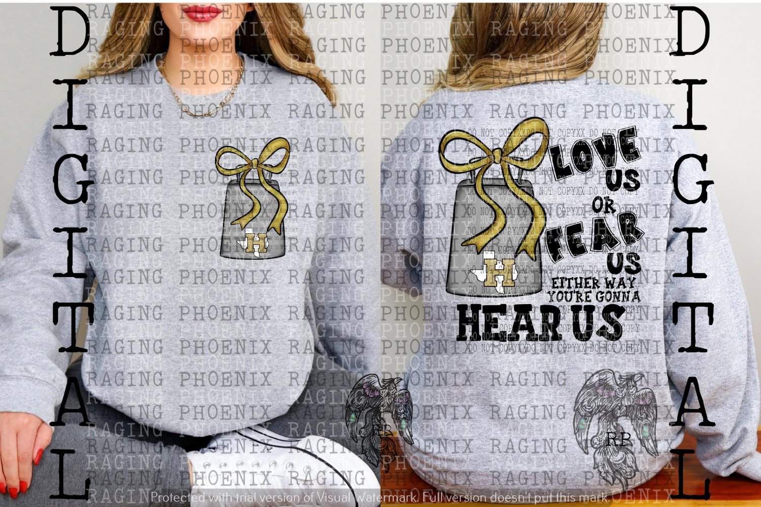 LOVE US FEAR US-COW BELL HENRIETTA BEARCATS MBA43