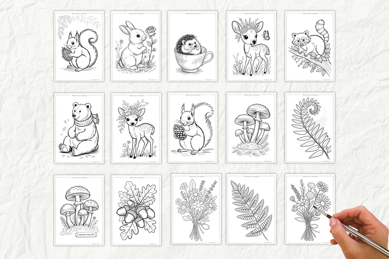 27 Whimsical Woodland Watercolor Templates & Digi Stamps
