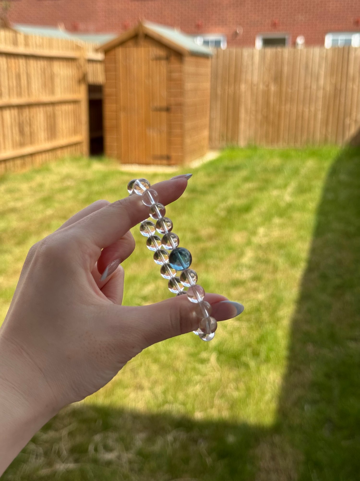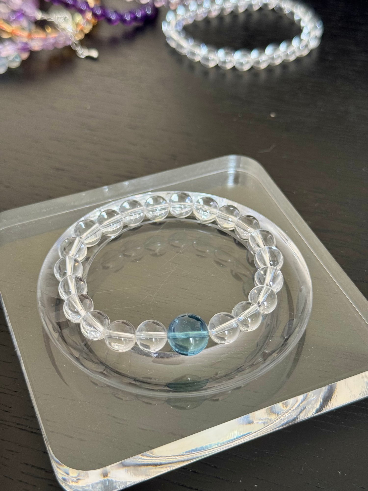 Clear Quartz lifts the spirit and deepens your connection to higher guidance, while Aquamarine enhances inner knowing. Together, they support meditation, spiritual growth, and intuitive insight.