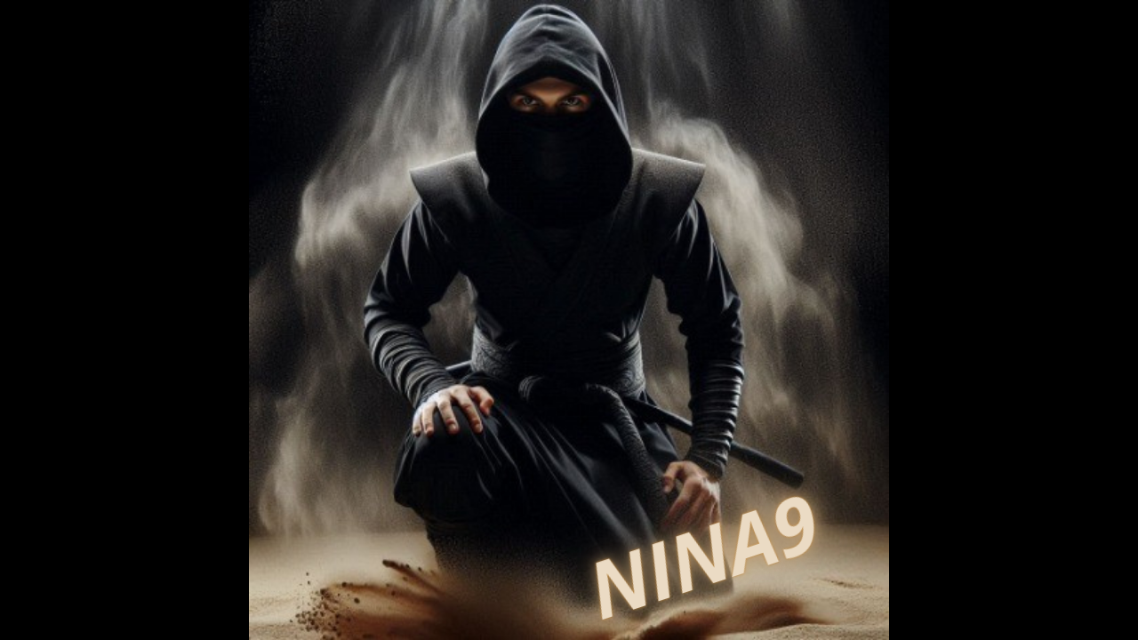 Ninja man.Powerful,strong.Black background,light,sandstorm.Ai generated.Digital download.
