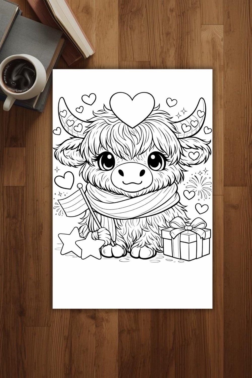 Bella Moo Celebrates Pride Coloring Page – Cute Highland Cow Coloring Page (Printable PDF)