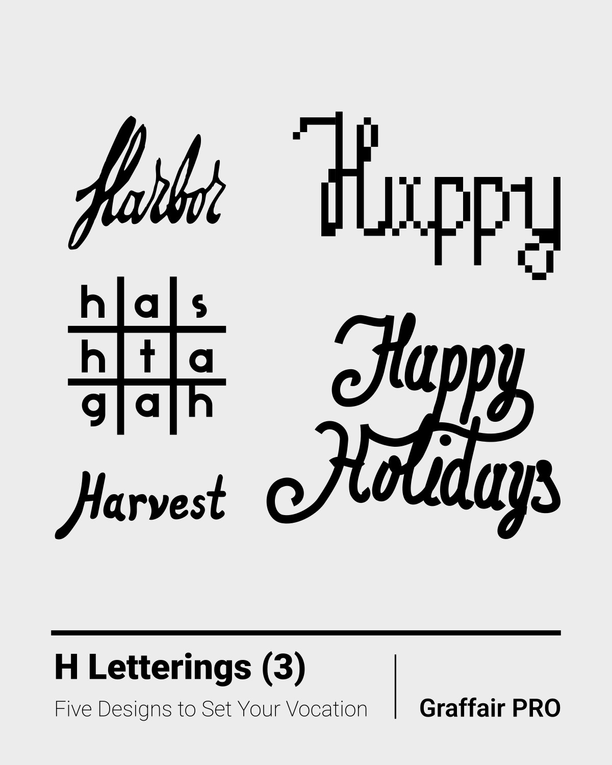 H Letterings (3): The 3rd set of "H" logo/letterings includes five original designs. These letterings are part of the "800 SVG Letterings" bundle, which also contains 800 other exceptional designs.