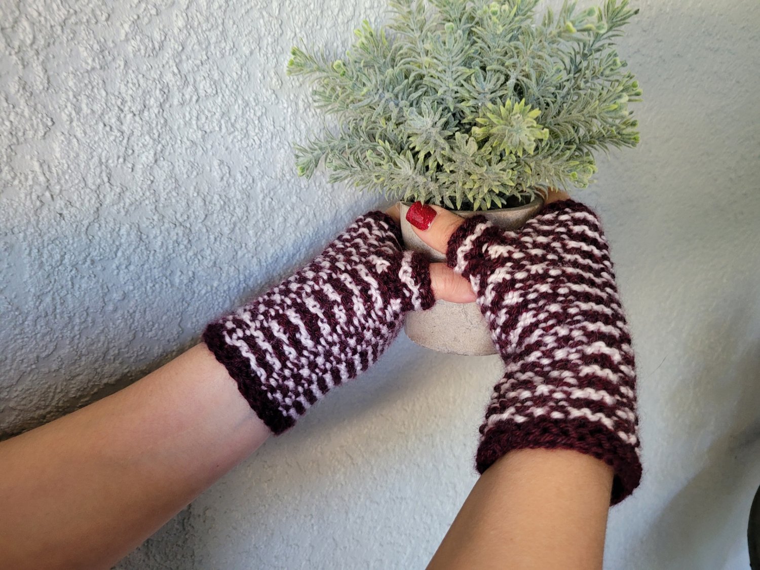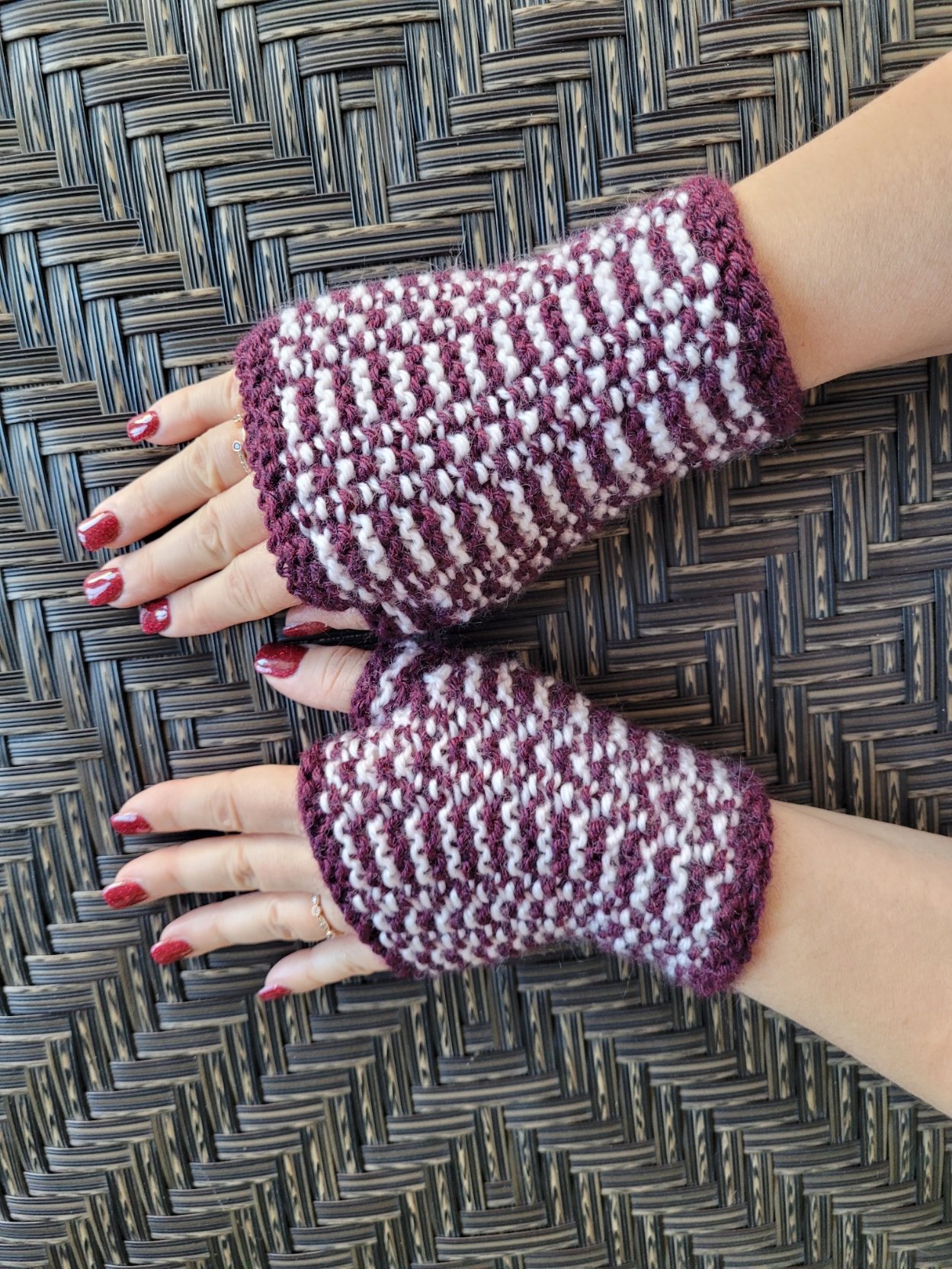 Purl Striped Fingerless Mitts Knitting Pattern