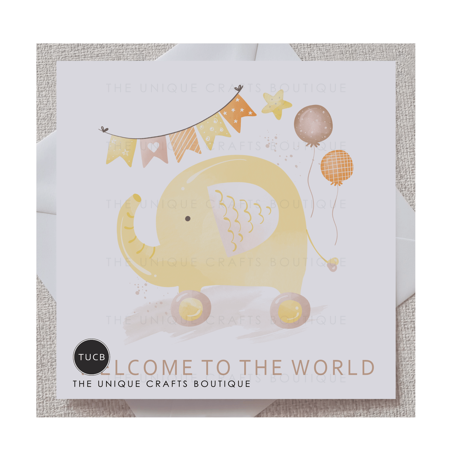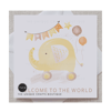 This card is perfect for the celebration of a beautiful new baby. Printed with a sweet baby toy in lovely neutral yellow and brown shades and with a message reading 'welcome to the world' this card gives the perfect finish to welcome a new little one.