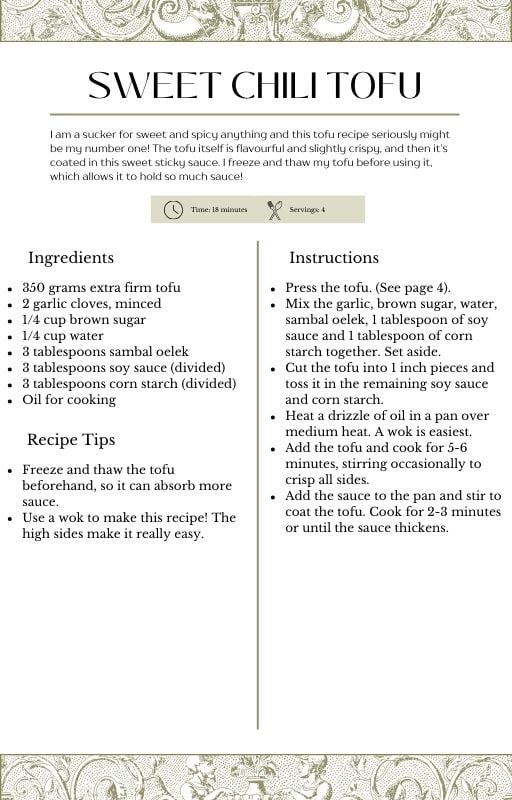 This ebook features 10 delicious tofu recipes and 1 bonus recipe. All of my tofu recipes are made with accessible ingredients that you probably have in your pantry or fridge, and easy to follow instructions.