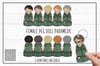 Welcome to this set of PEG DOLL FEMALE PARAMEDICS. You get a Peg Doll with different hair colours and a set of glasses to add if needed. As well as a rear view. These come in 3 skin tones Fair, Medium and Dark. These are designed to fit the Peg Doll Blanks which make perfect keyrings but are also great for other projects such as cards, cushions and mugs and water bottles too. These are high resolution 300 DPI files. Thanks as always for looking.