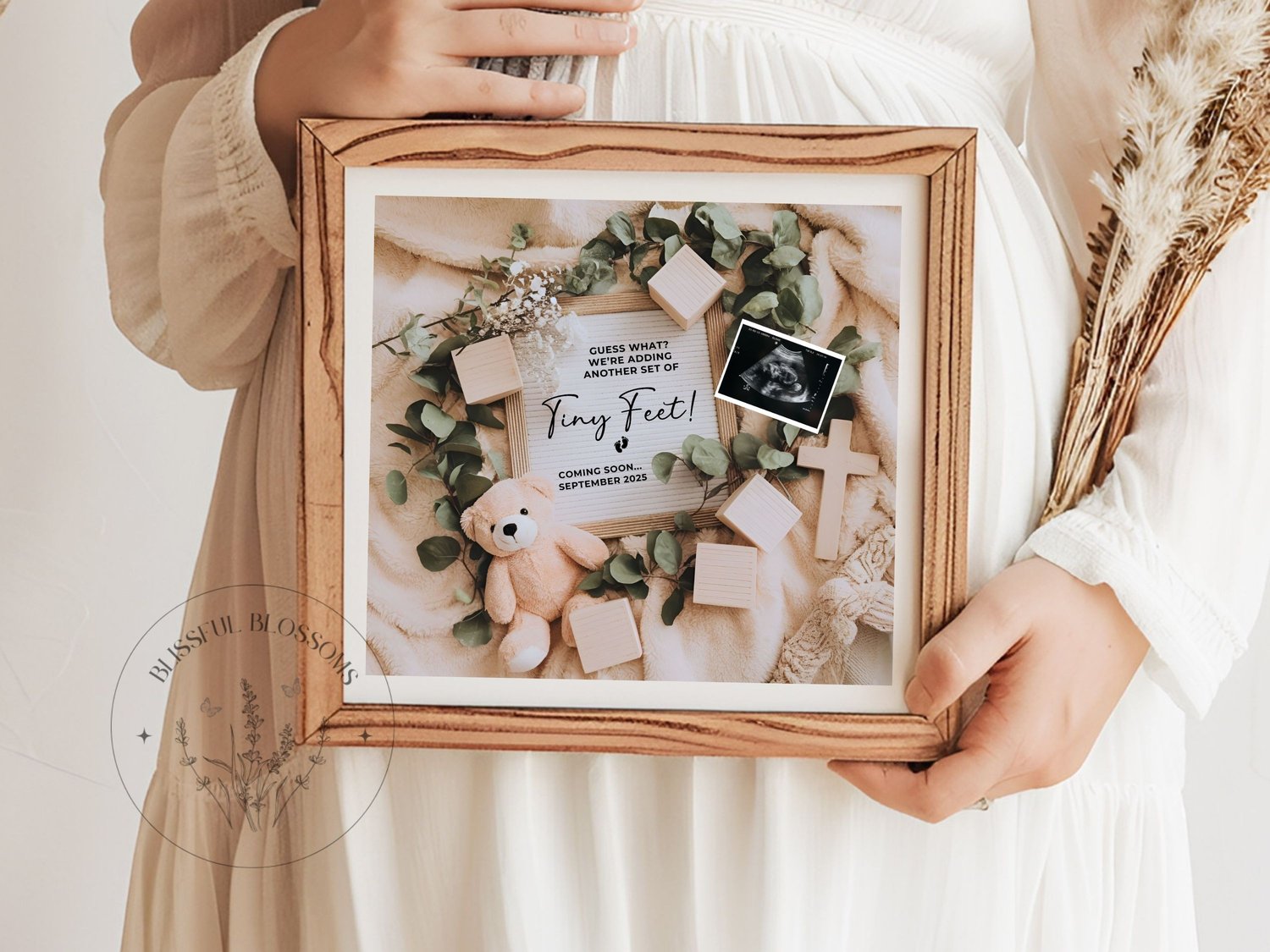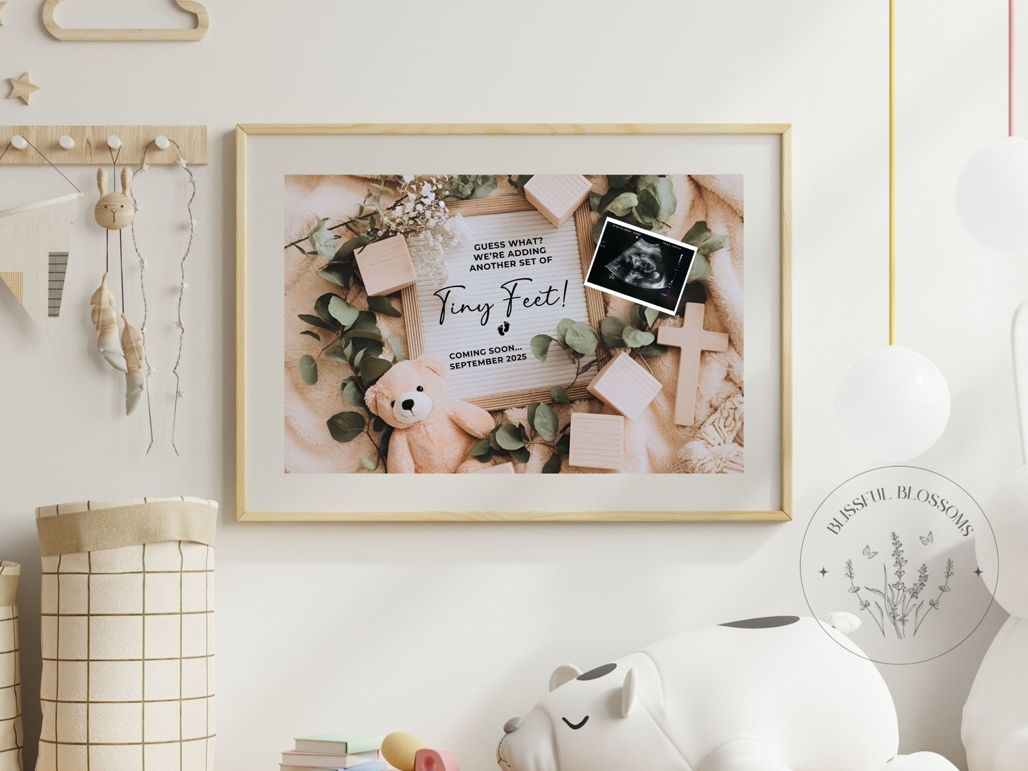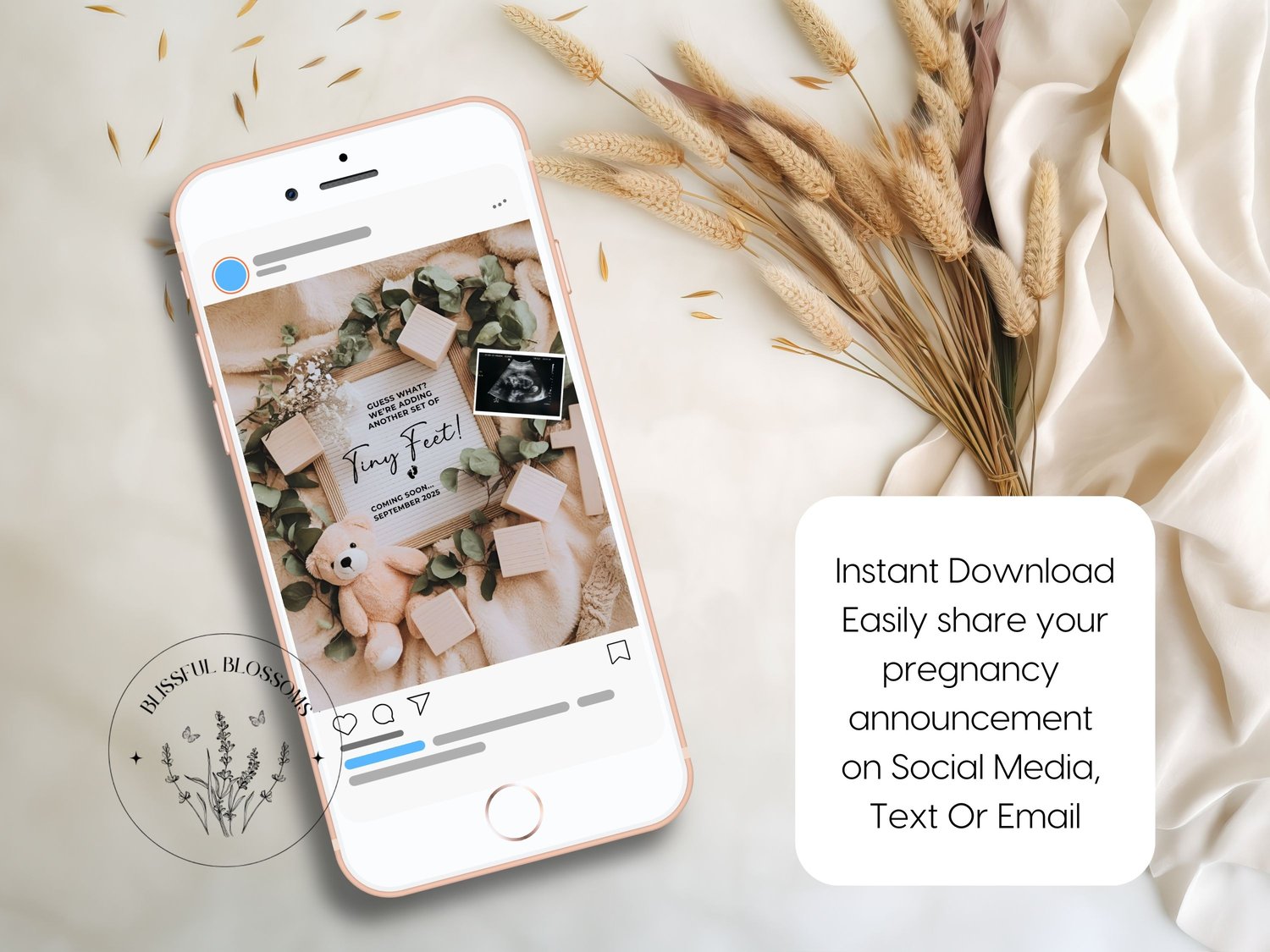 Celebrate your exciting news with our Pregnancy Announcement! This digital template allows you to customize your announcement with ease. Featuring a fresh and vibrant design perfect for summer, this gender-neutral announcement is ideal for sharing your joy with family and friends.