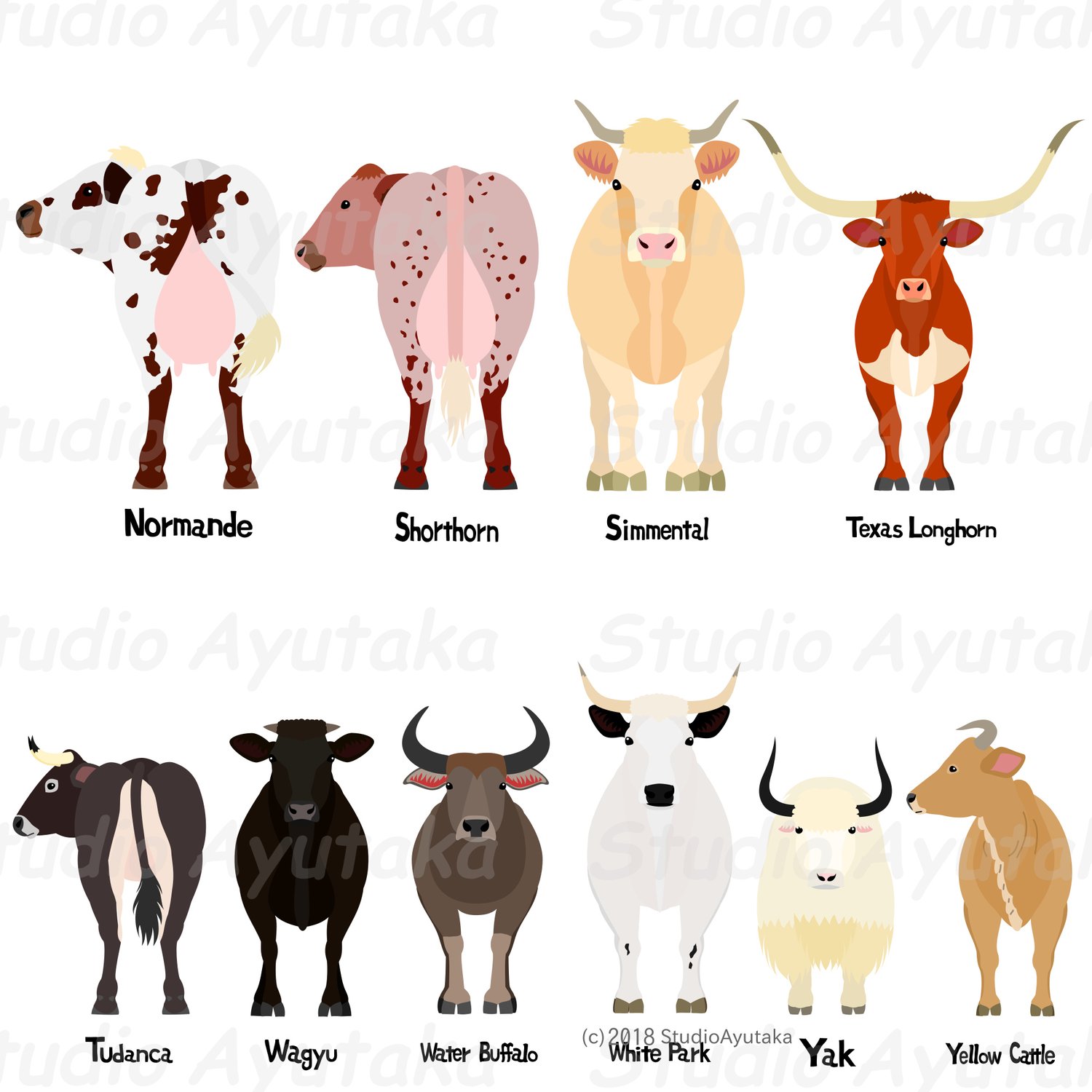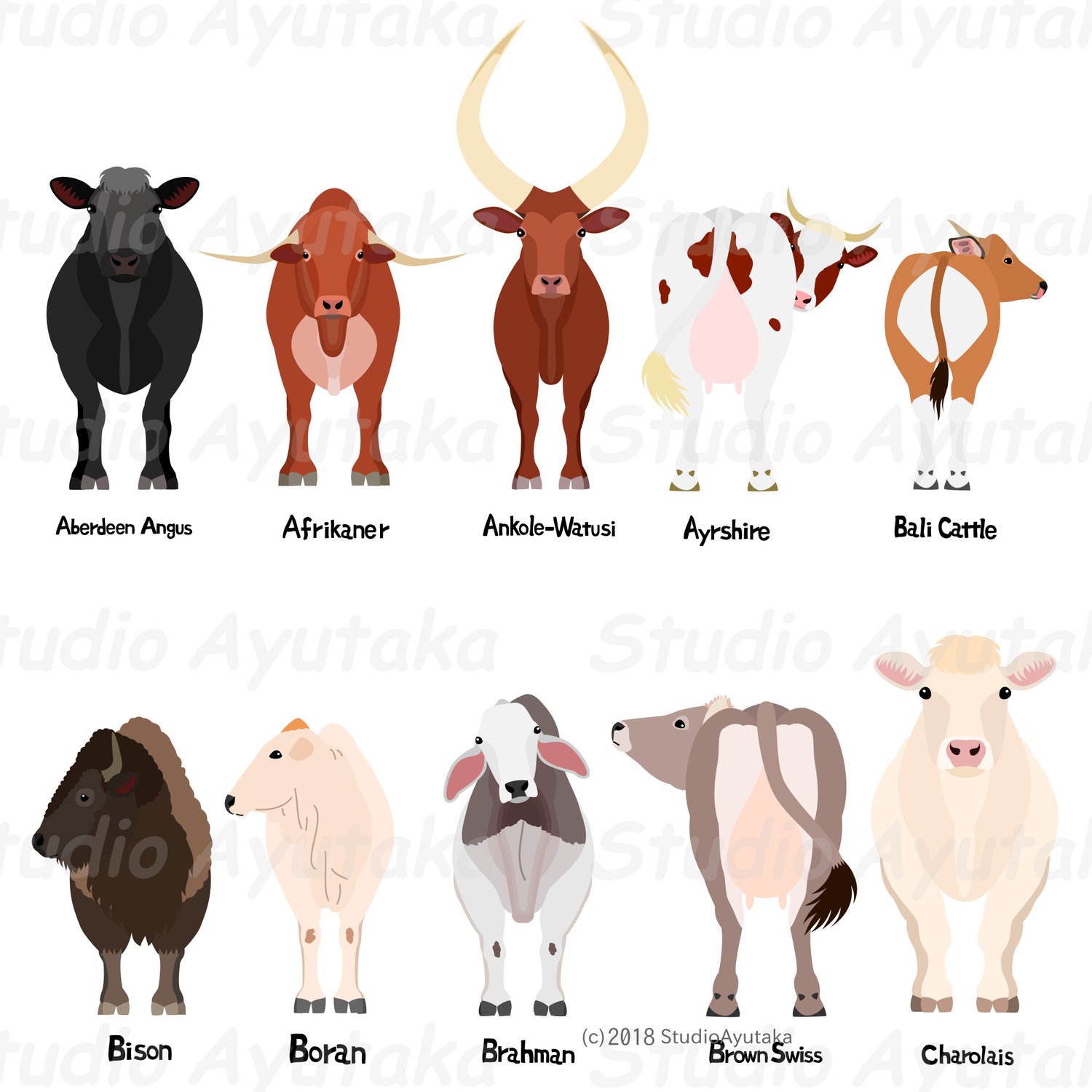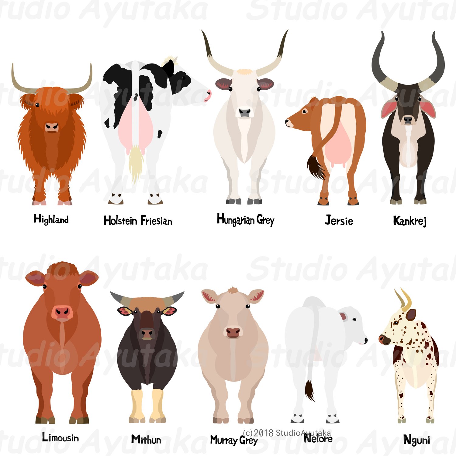 PNG×40(1 png has 1 cow, without breed name), 300dpi, RGBcolor, transparent back, longest side w:94mm(1107px) h:128mm(1509px)
