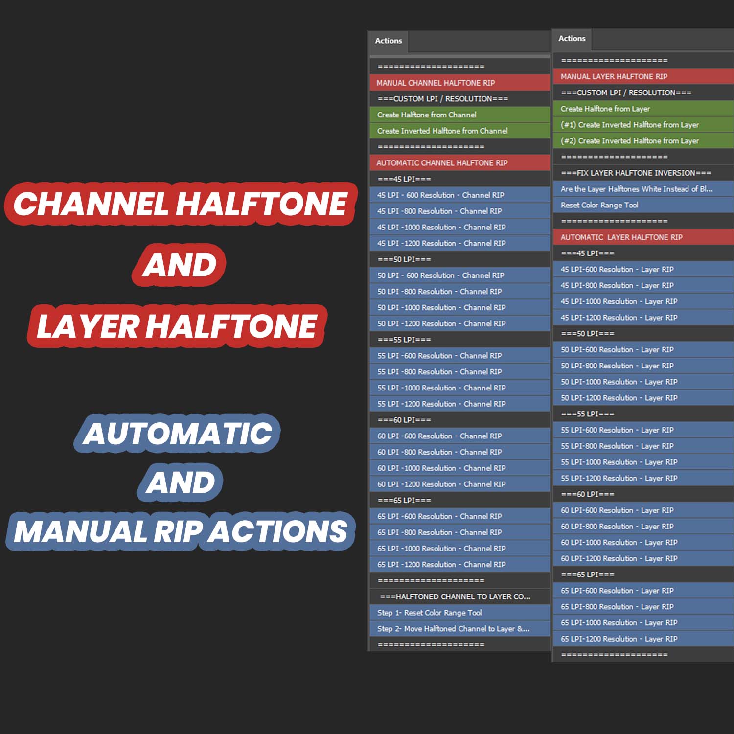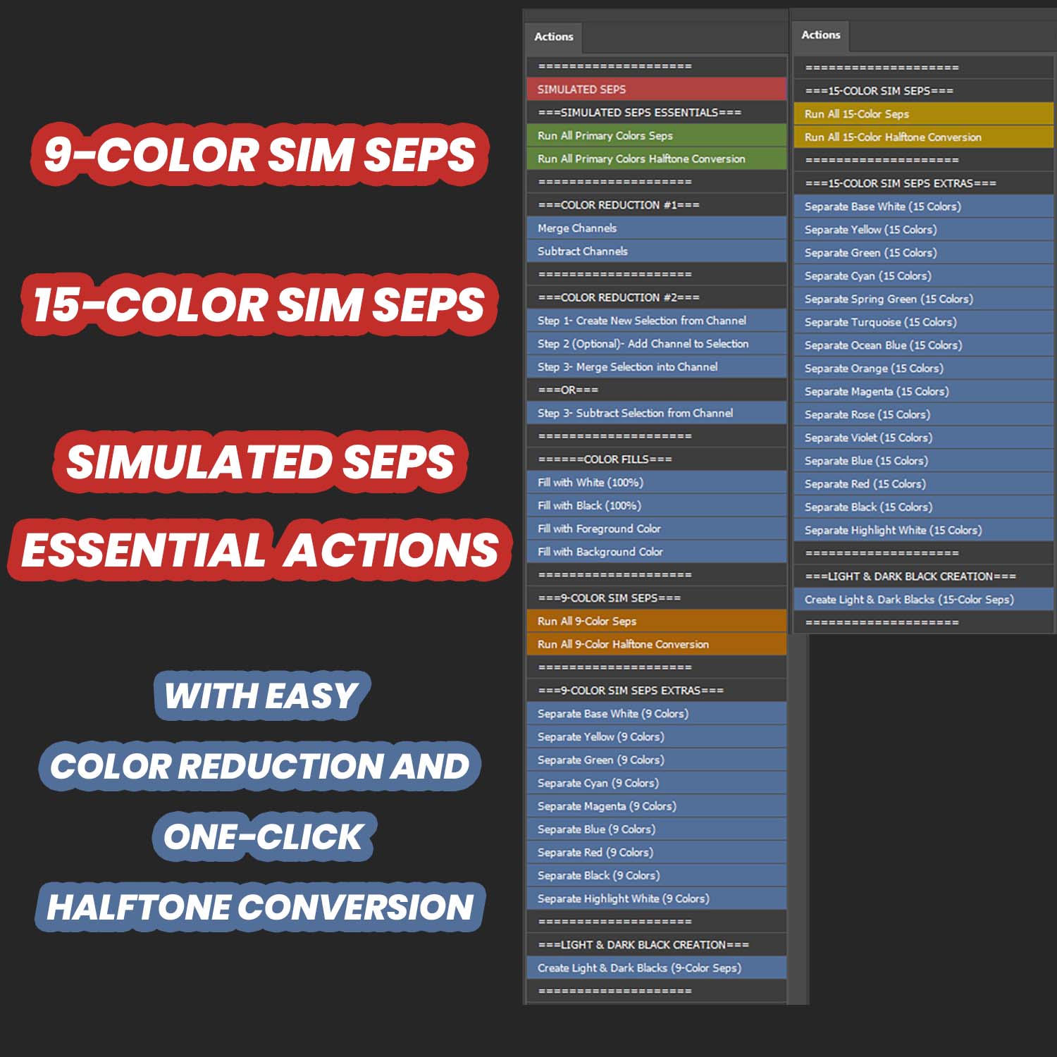 - The Pro Version also includes easy-to-use actions for color reduction and simulated seps halftone conversions, all done with a simple click.
