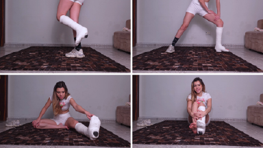 Julia arrives home excited to learn that her cast is working properly. So, she decides to record a video for Instagram, showing how she practices yoga with the cast on her leg. During the video, she comments that there are some exercises impossible to perform with a cast, while others can be done with some adaptations.