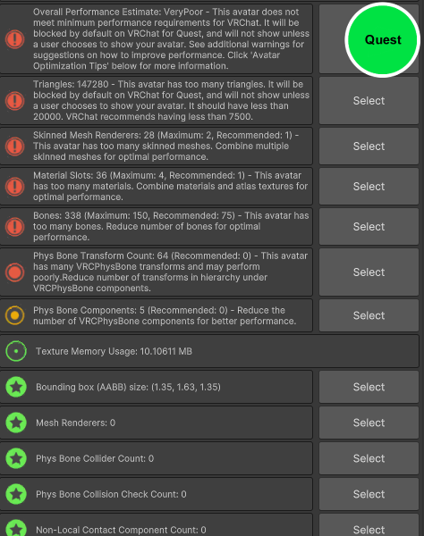 colliders on the chest, boobs, hips, and floor! :33 (0 on the quest version)