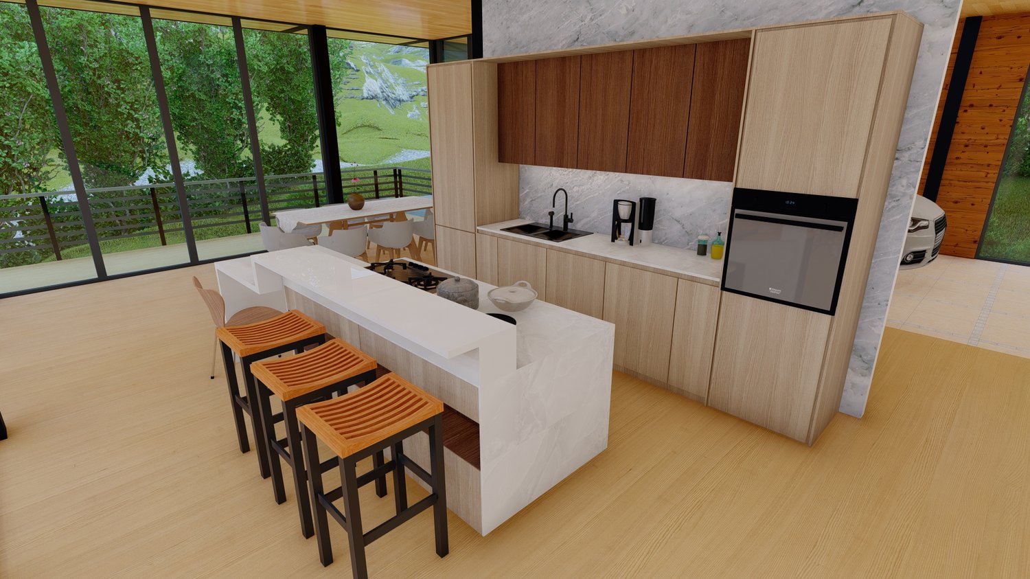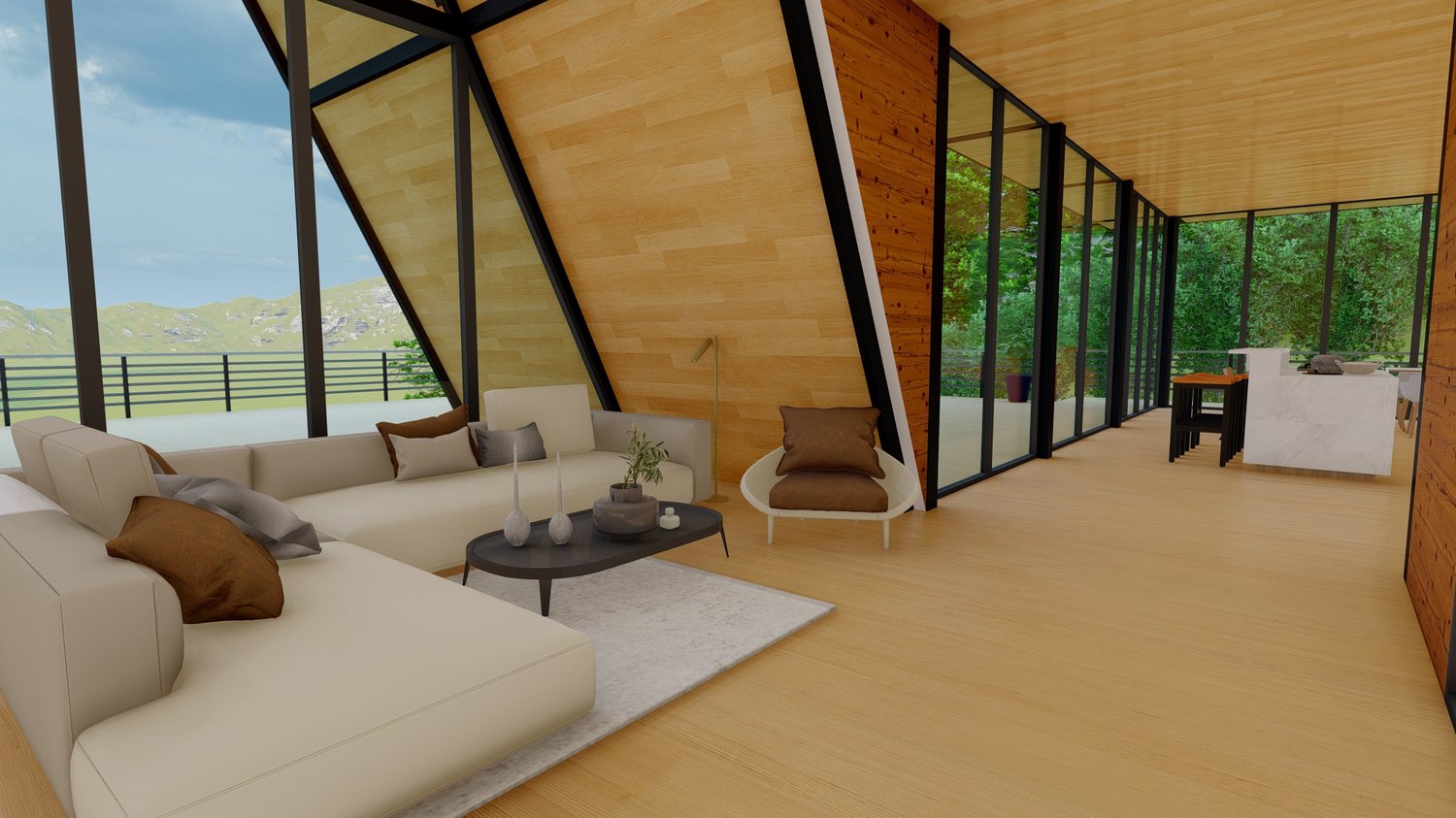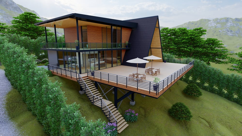 Habitaciones extra grandes con baño privado, sala + cocina + comedor en concepto abierto, y diseño para terrenos con pendiente con estructura metálica profesional.