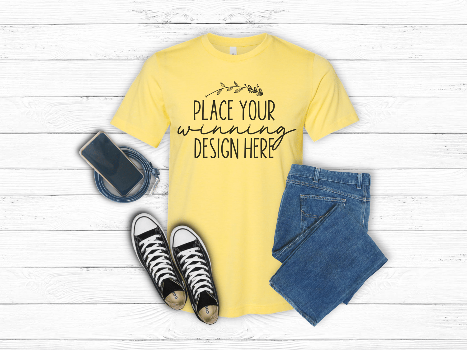 - 1 JPEG image for the Bella Canvas 3001 shirt. Color: heather yellow
