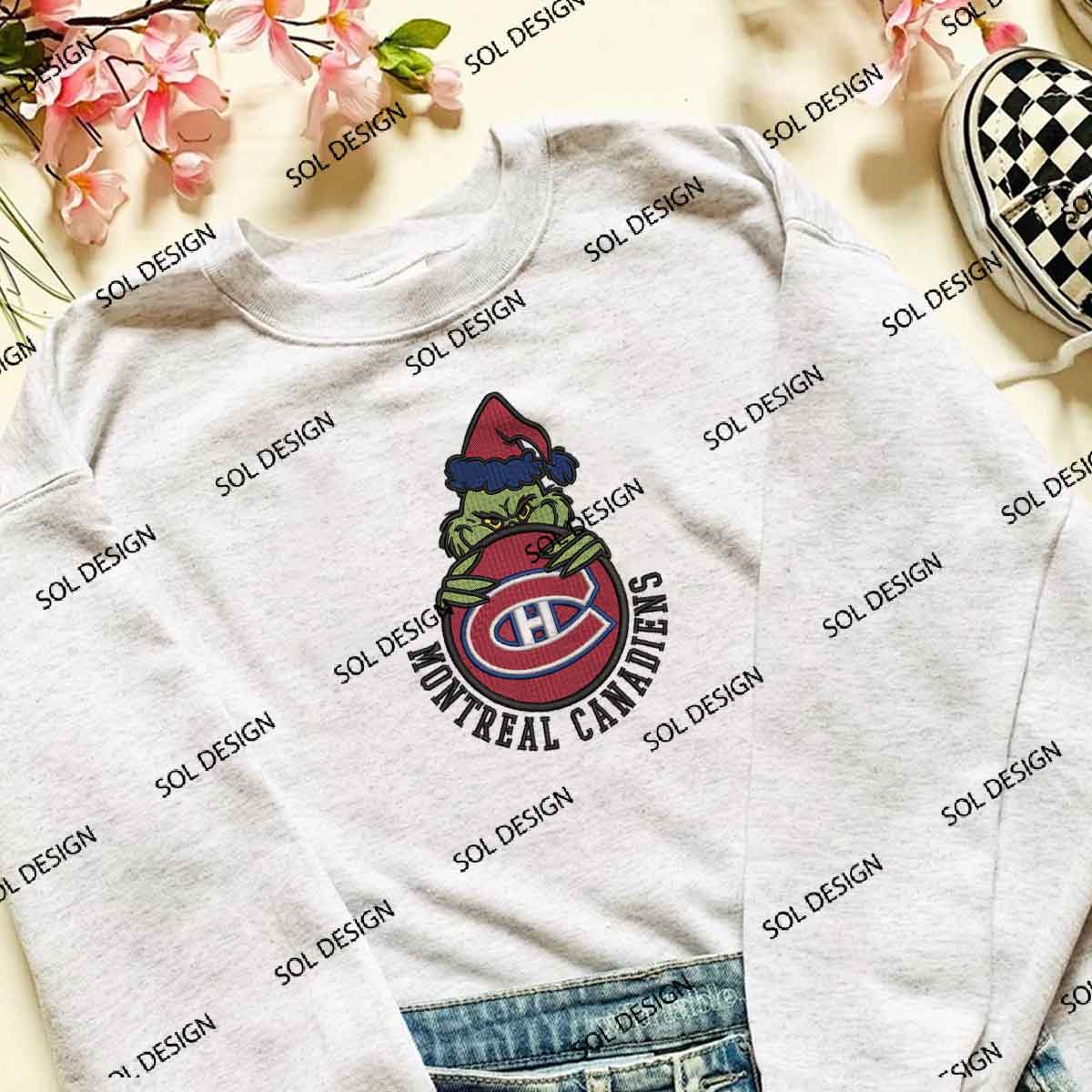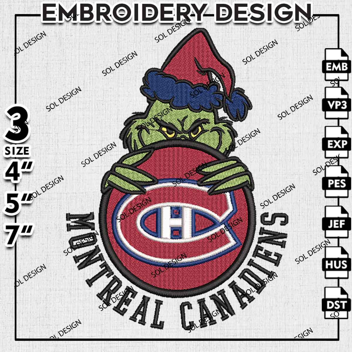 NHL Montreal Canadiens Team x Grinch Face Holding Ornament Embroidery Designs, Grinch Embroidery Files, NHL Canadiens Hockey Team Logo Embroidery, Christmas Machine Embroidery Design, Digital Download
