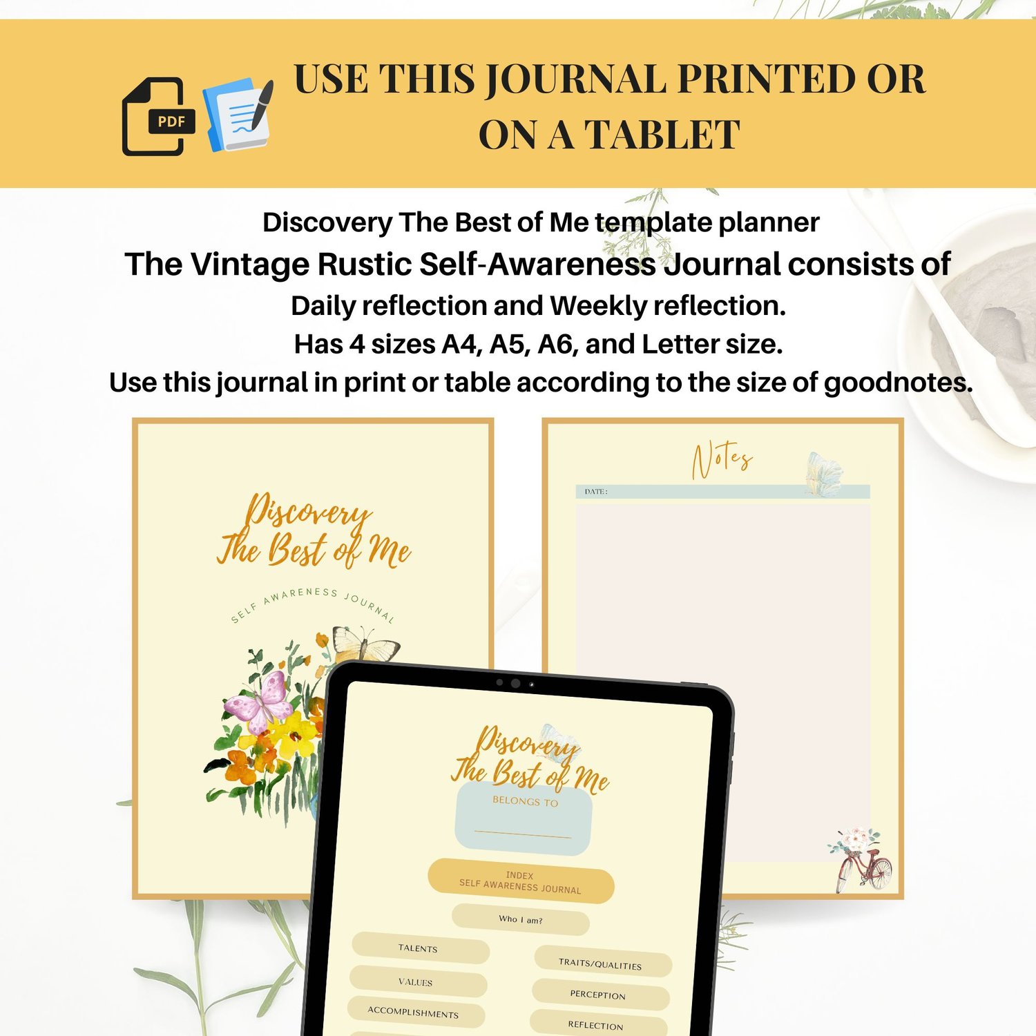 Unearth your true potential and uncover your hidden talents by using our innovative Vintage Rustic Self-Awareness Printable Journal!