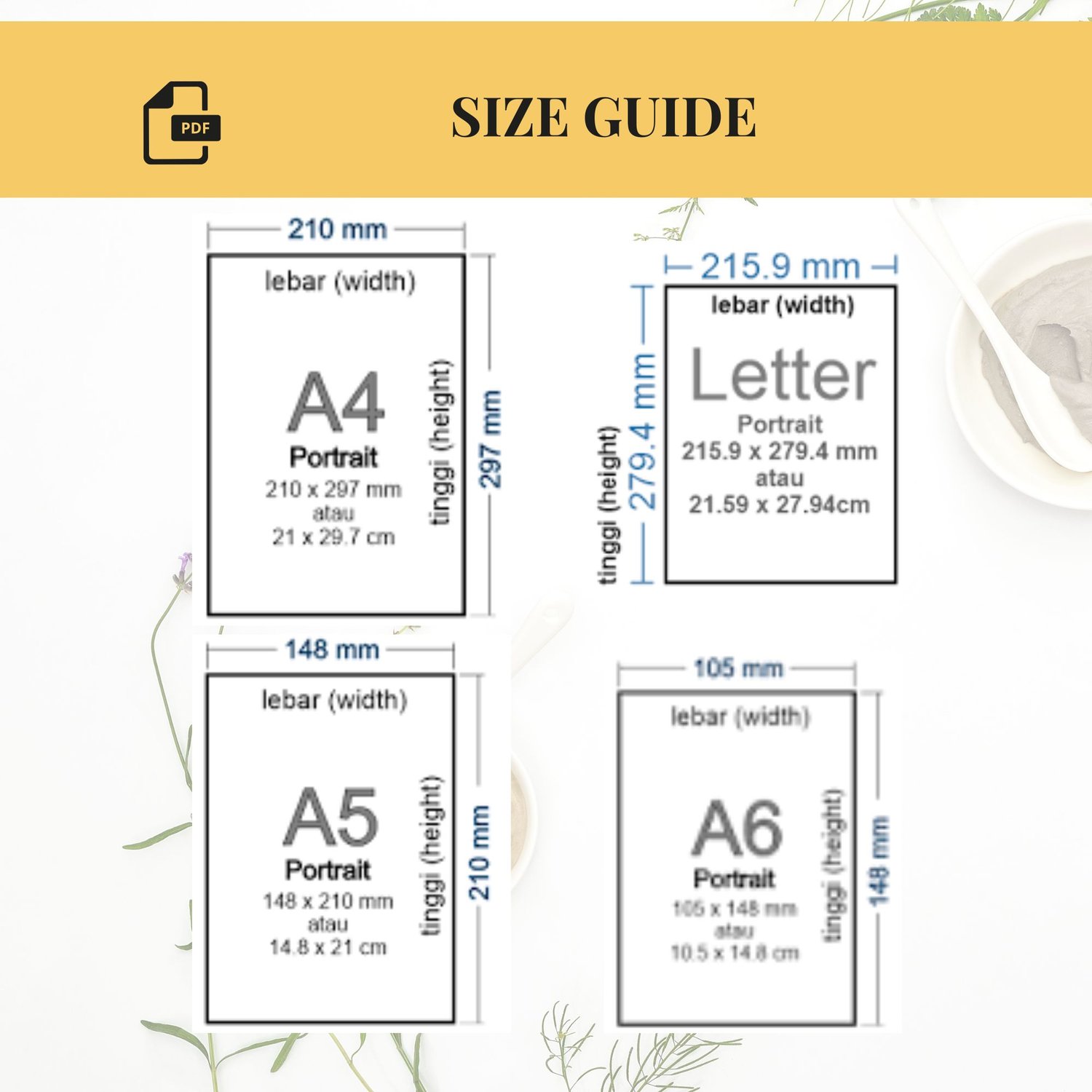 • Your purchase includes A4, A5, A6 & Letter size Journal