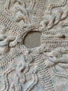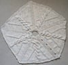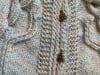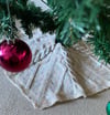 The Rocking Around the Christmas Tree Skirt is worked in one flat piece, divided into five sections, with ribbing down each side to make button bands, allowing the tree skirt to be held together with your favourite Christmassy buttons. Each section is identical, so you work the ribbing, the pattern section 5 times, and then more ribbing.