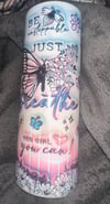 20 oz tumbler cup. Guaranteed to beverages hot or cold and ice last up to 24 hours. Comes with plastic cup and stainless steel straw. Cup glows green in the dark. Uv light activated. No refunds. Please keep in mind these are hand made, very little flaws may and can occur. Stainless steel cup.