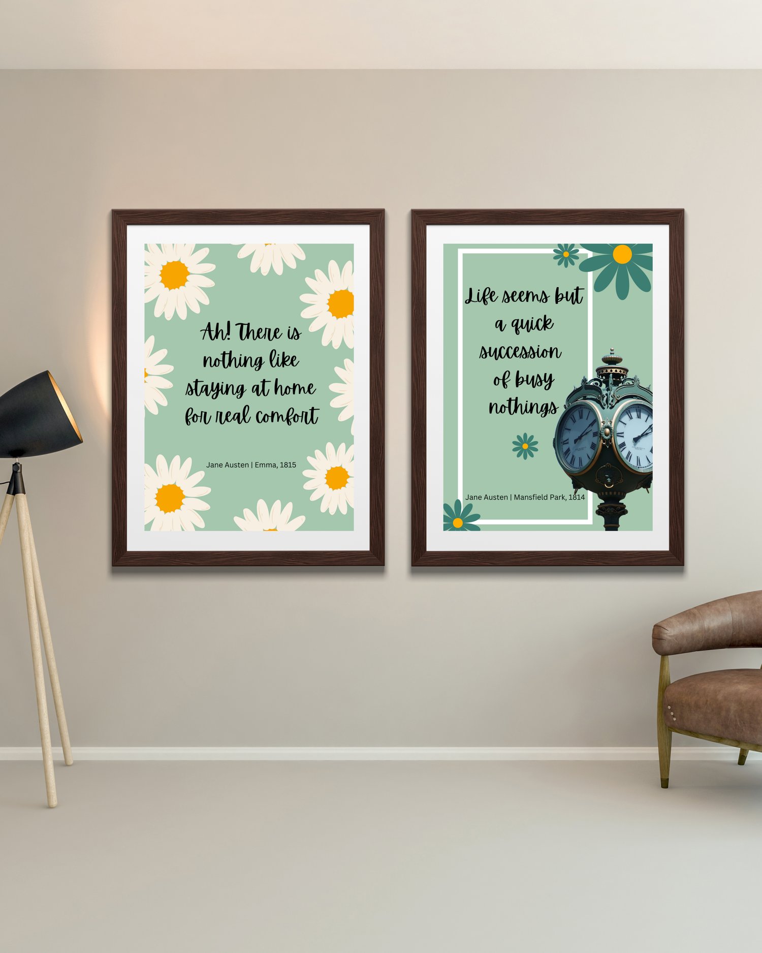 Transform your space with the enduring elegance of Jane Austen's most beloved words. These two exquisite poster designs capture the wit, wisdom, and romantic spirit that have made Austen's voice resonate across centuries.