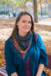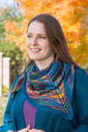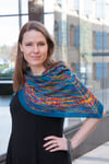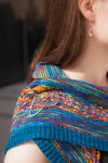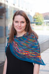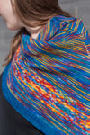 This is an approachable shawl, with clever-but-easily-worked single-row stripes that keep the shades in That Skein from muddying each other. There is a contrasting band of a textural stitch that looks complex but is easily memorized, and which pulls That Skein into dimensional bursts of glowing colour. While the techniques used in Brightness and Contrast are simple, the result is anything but boring!