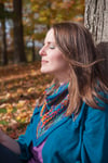 This pattern requires a multi-coloured yarn and a solid/tonal yarn that will work well together. Ideally, you will be able to get both yarns from the same dyer in the same yarn base, as with the indigodragonfly offerings used here. However, if you need to find a solid/tonal yarn to work with your multicoloured yarn, pay close attention to the yarn weight and structure, and to its materials, to try to find a second yarn that will work similarly.