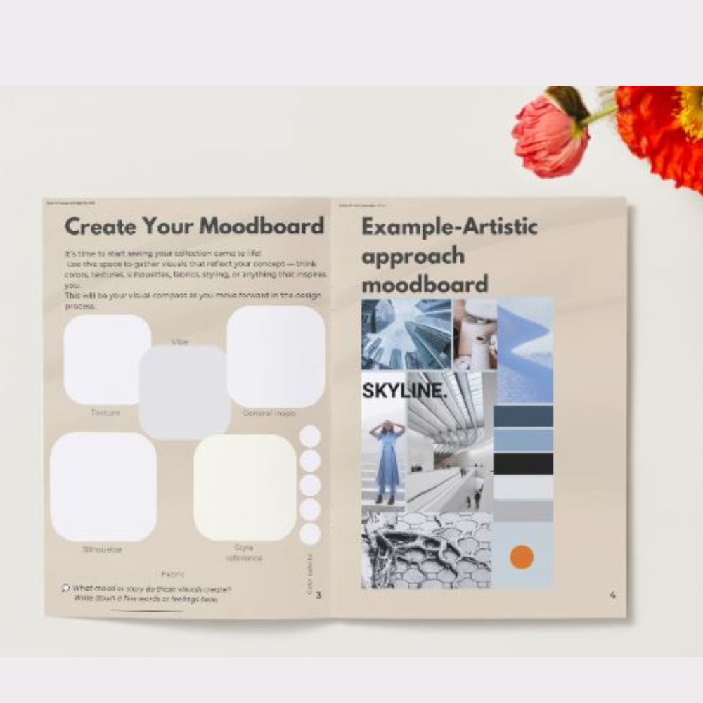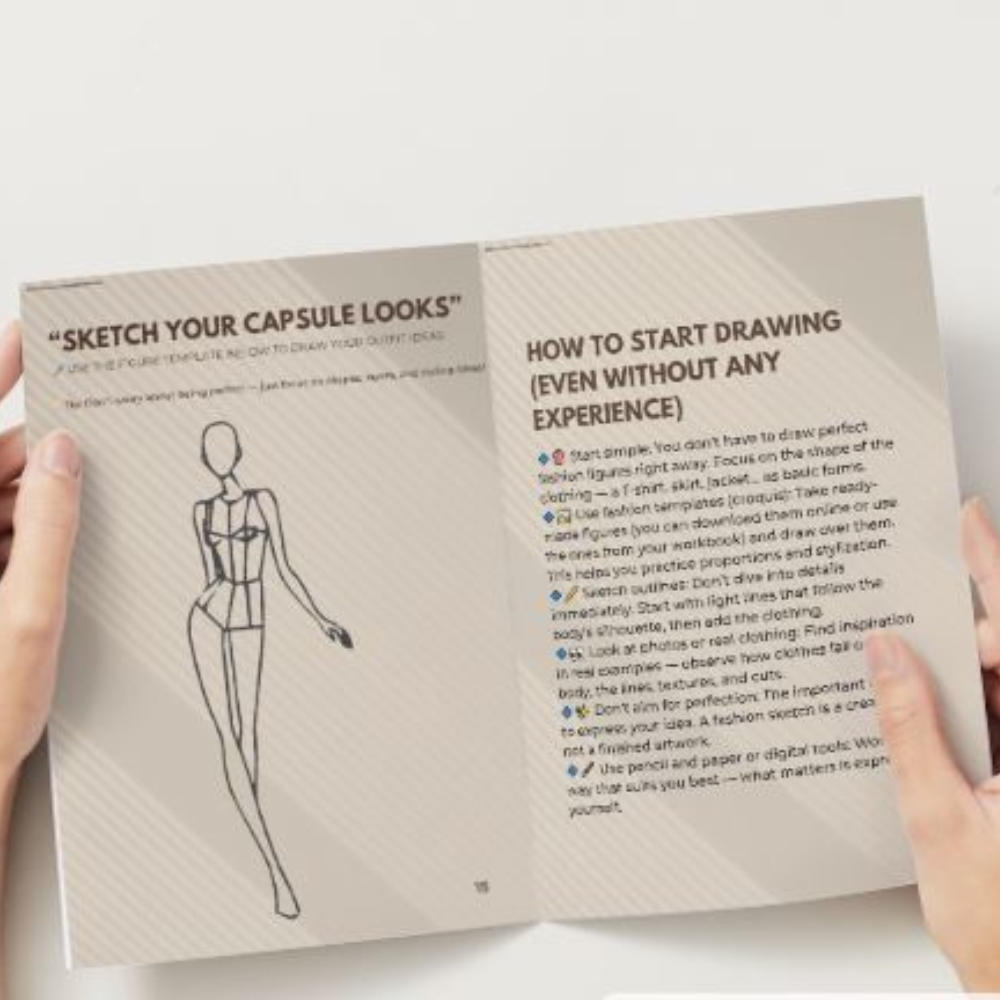 - A workbook with practical tasks to define your inspiration, color palette, silhouettes, and key pieces