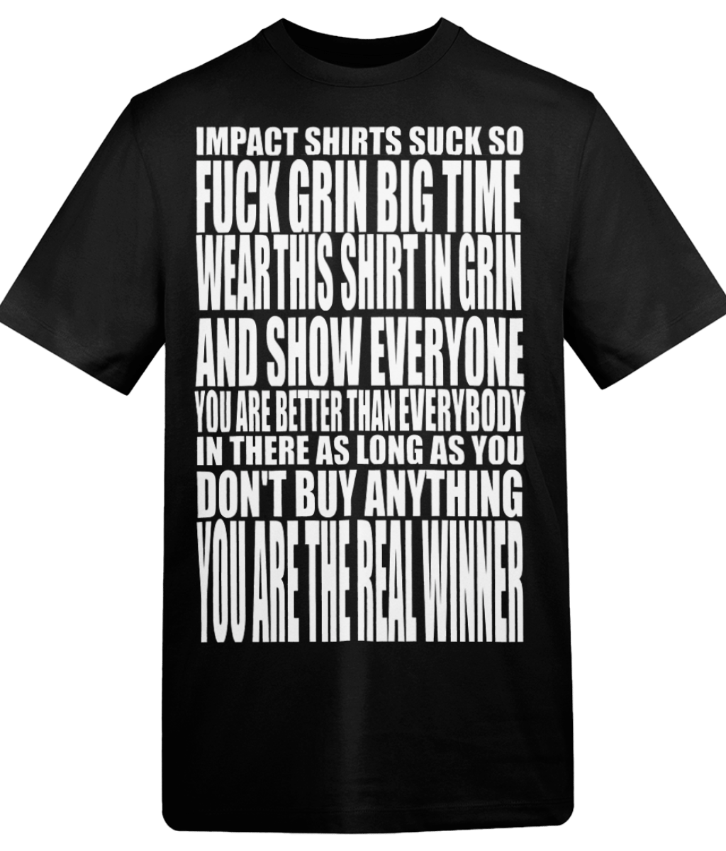 Hate certain stores that just LOVE to use impact font and be super boring? This is the shirt for you!