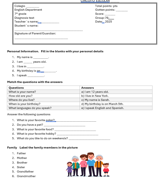 DIAGNÓSTICOS SECUNDARIA 7TH GRADE