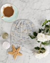 4” (10 cm) square = 32 stitches x 40 rows in stockinette (note: much of this hat is knit in seed stitch, so keep that in mind when choosing a size if your gauge loosens up significantly in seed stitch)