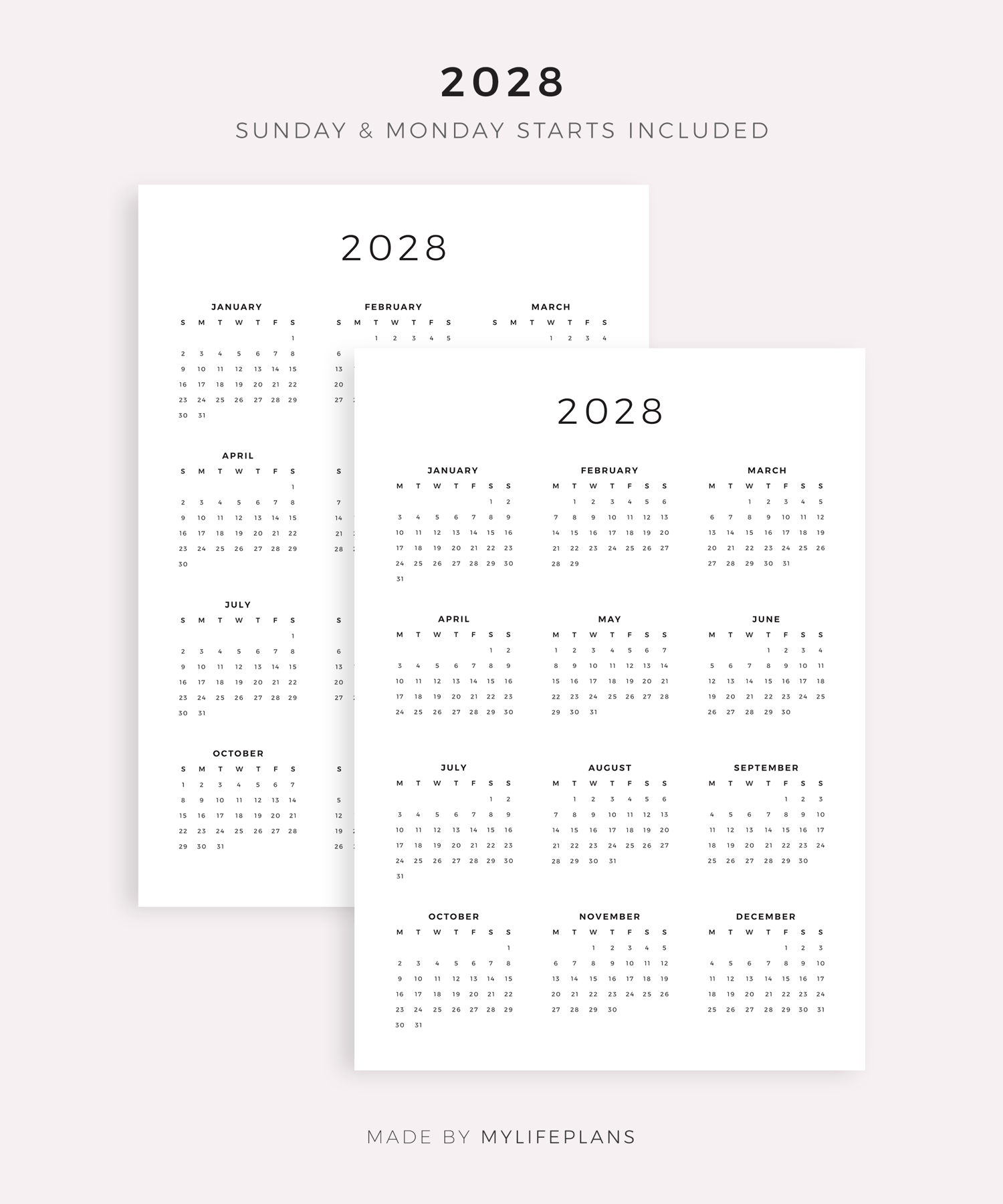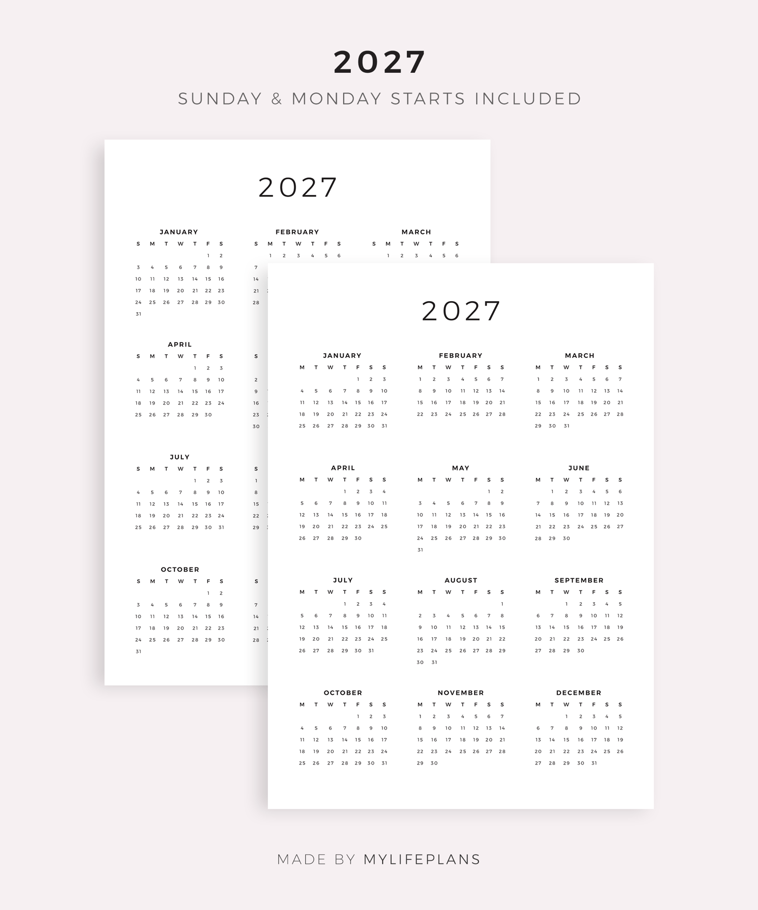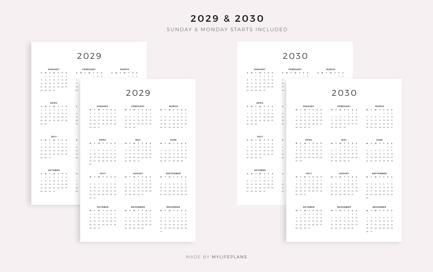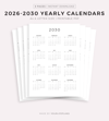 2026-2030 Year Calendars, Printable, A4/Letter Size