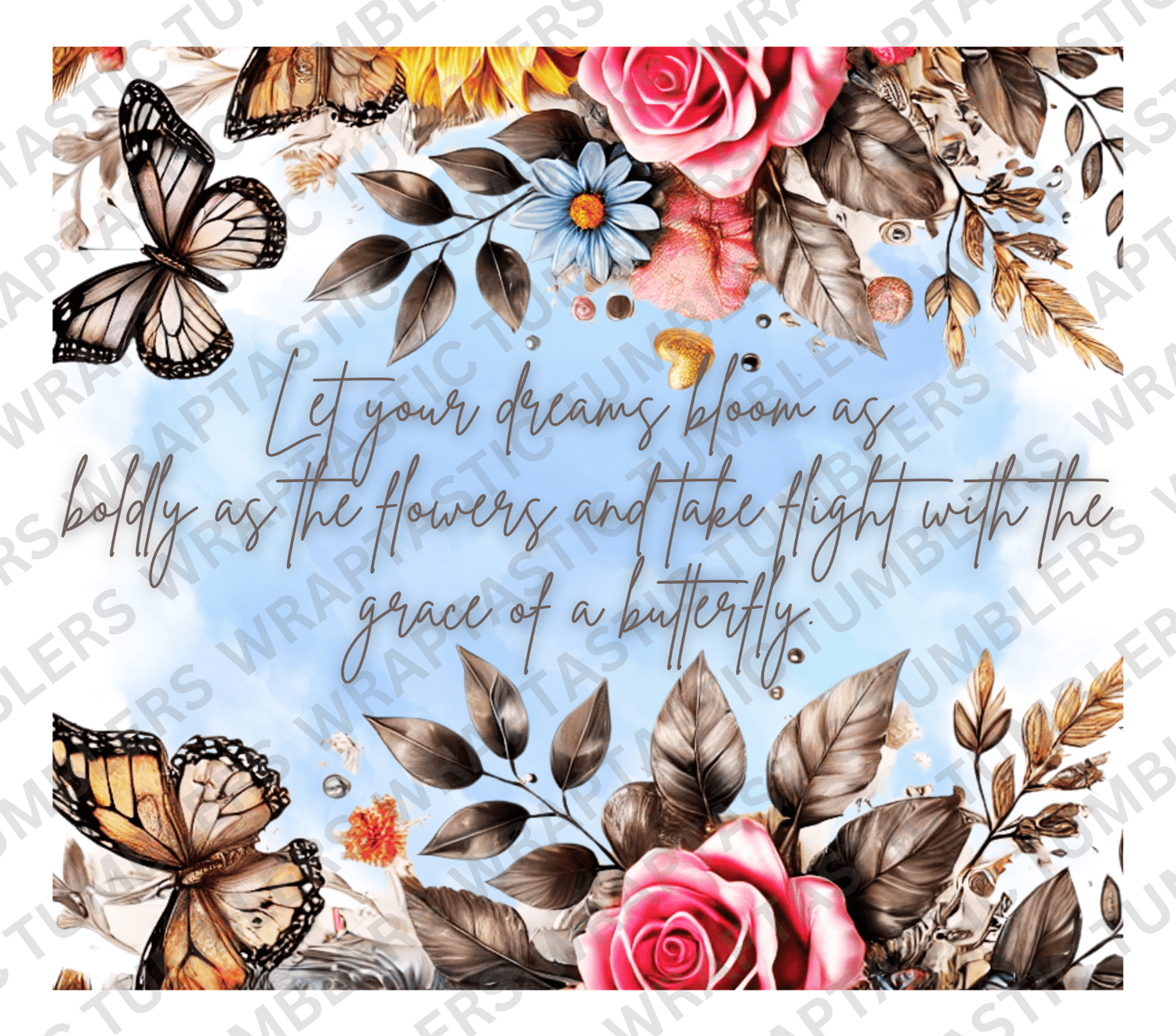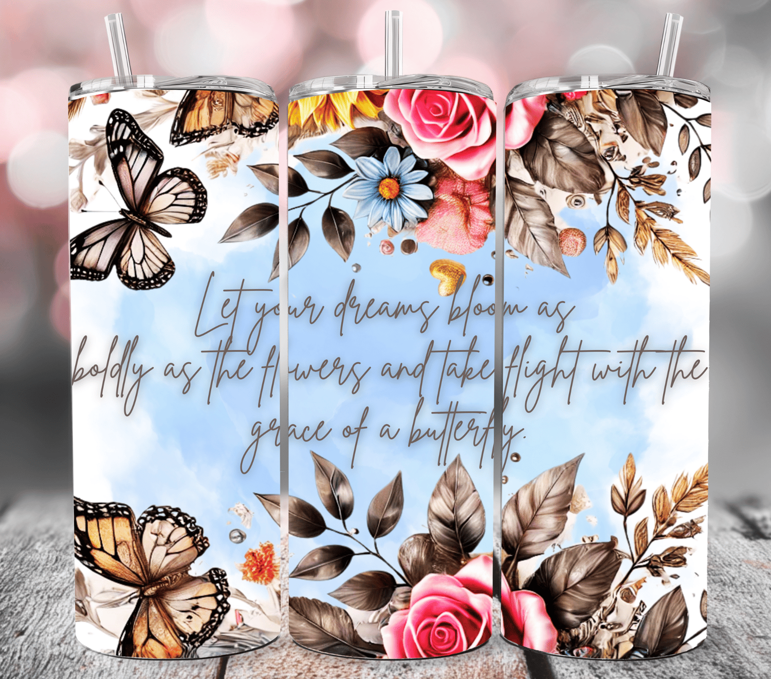 Butterfly Tumbler Wrap: Inspirational Affirmations, Floral Design (PNG Digital Download 20oz Skinny Tumbler